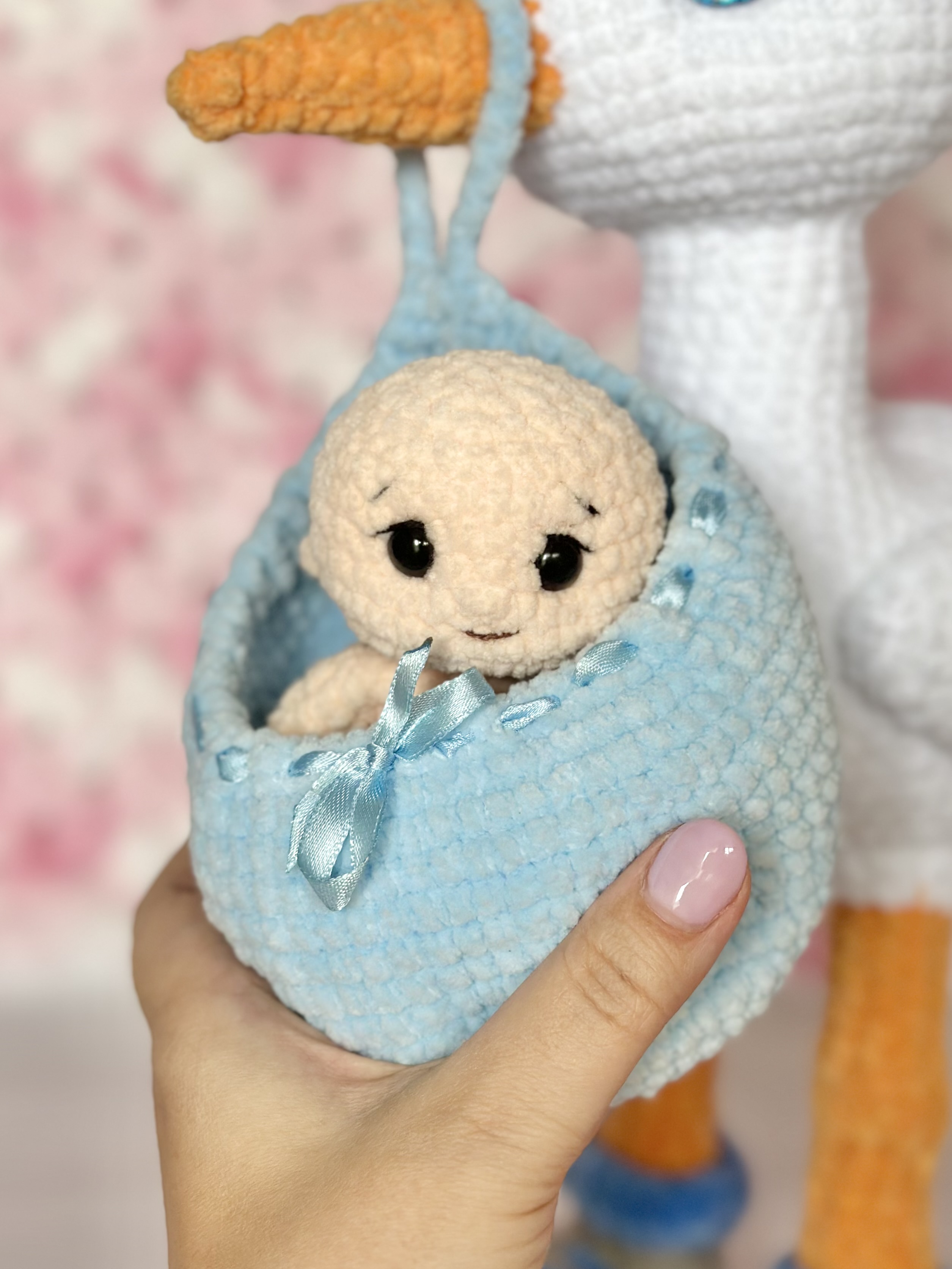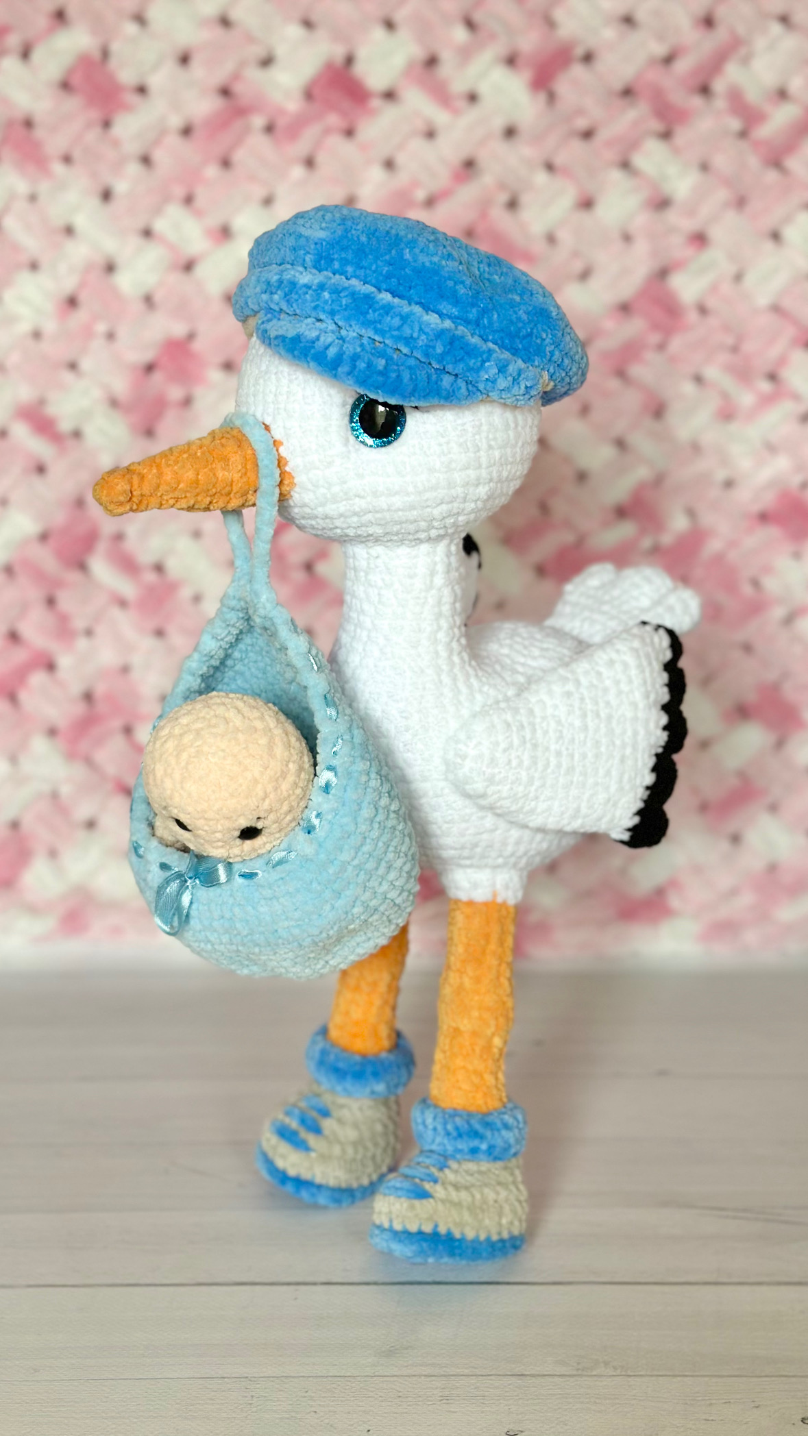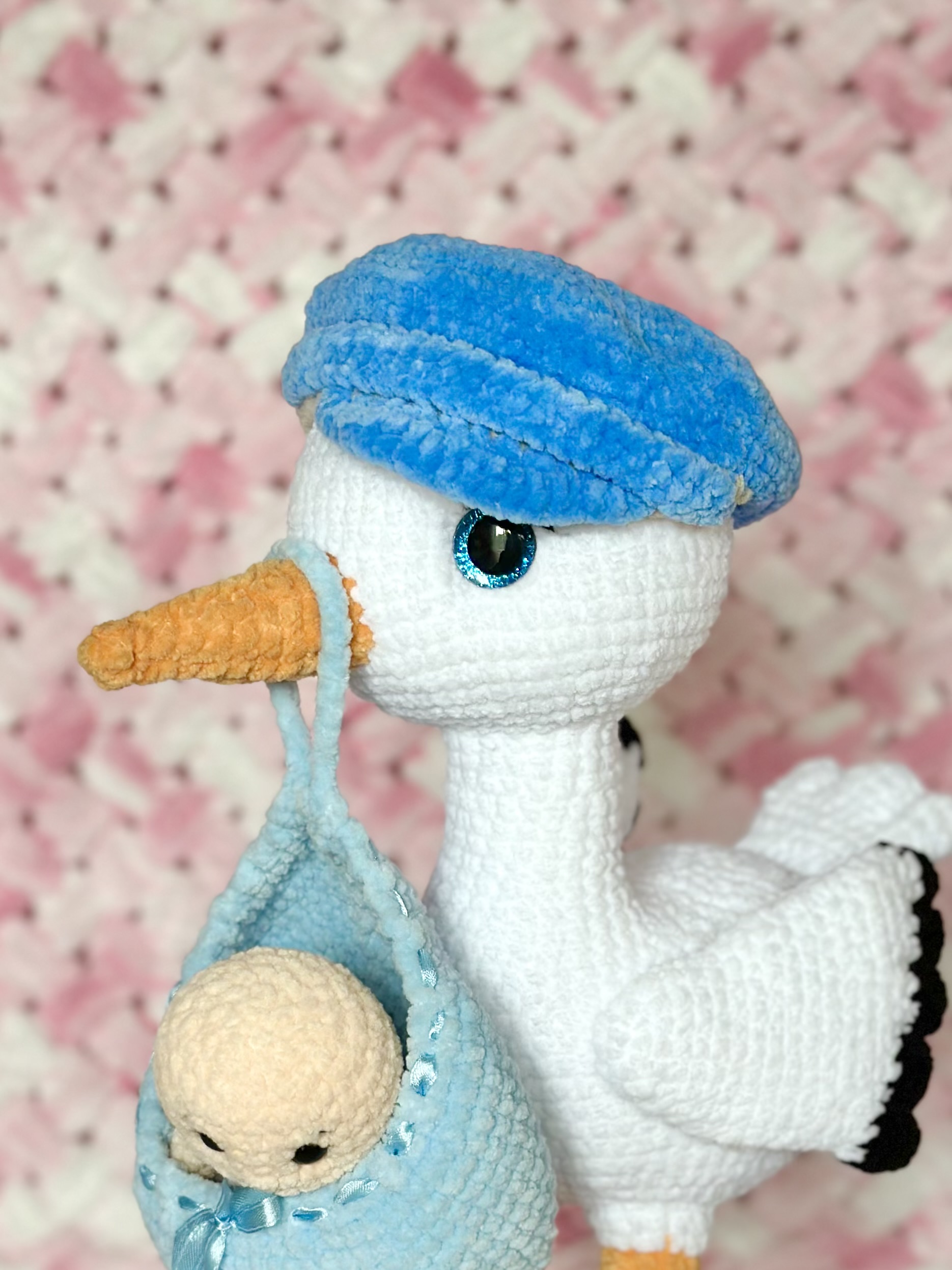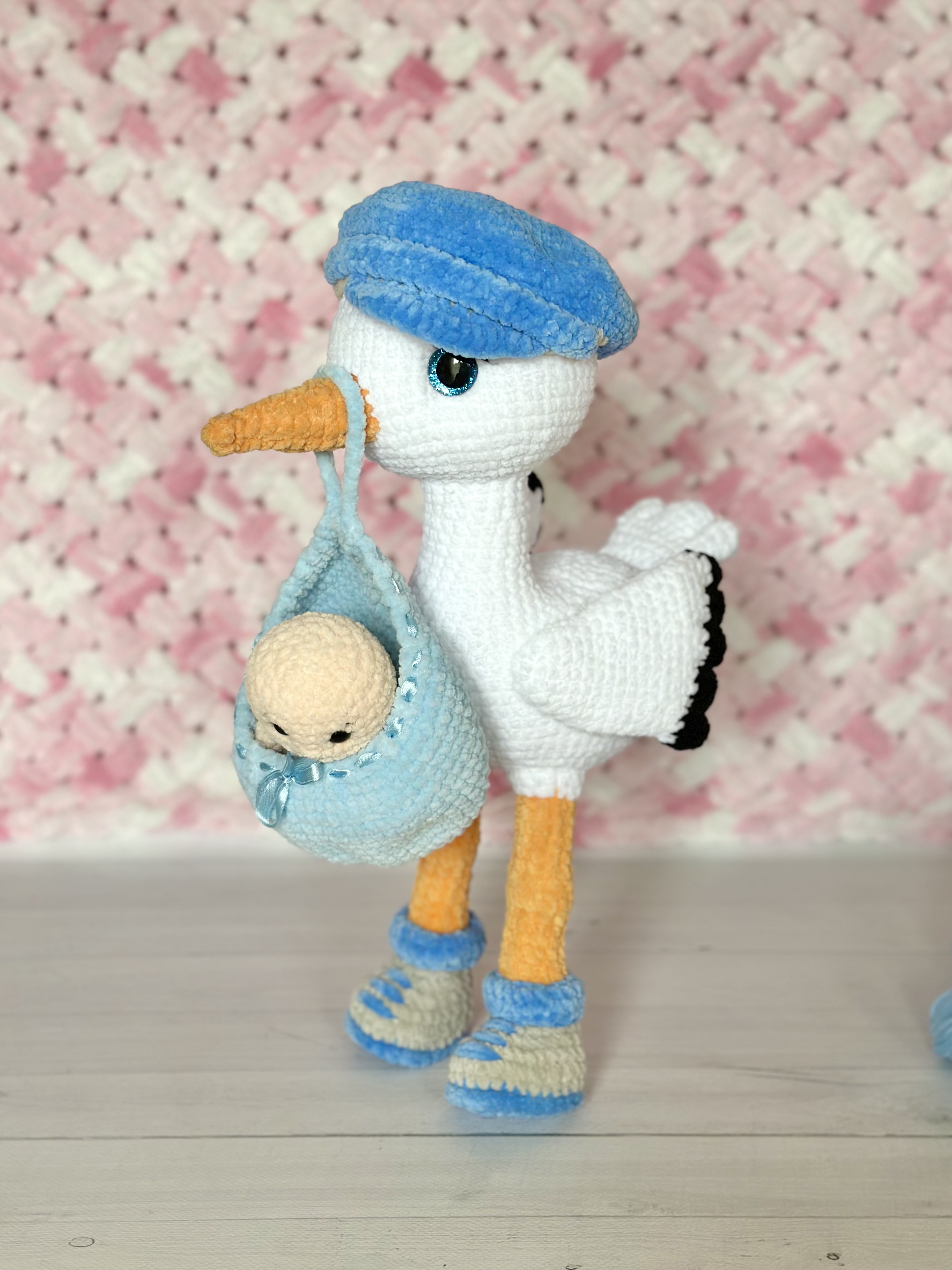 Rękodzieło - bocian wykonany szydełkiem