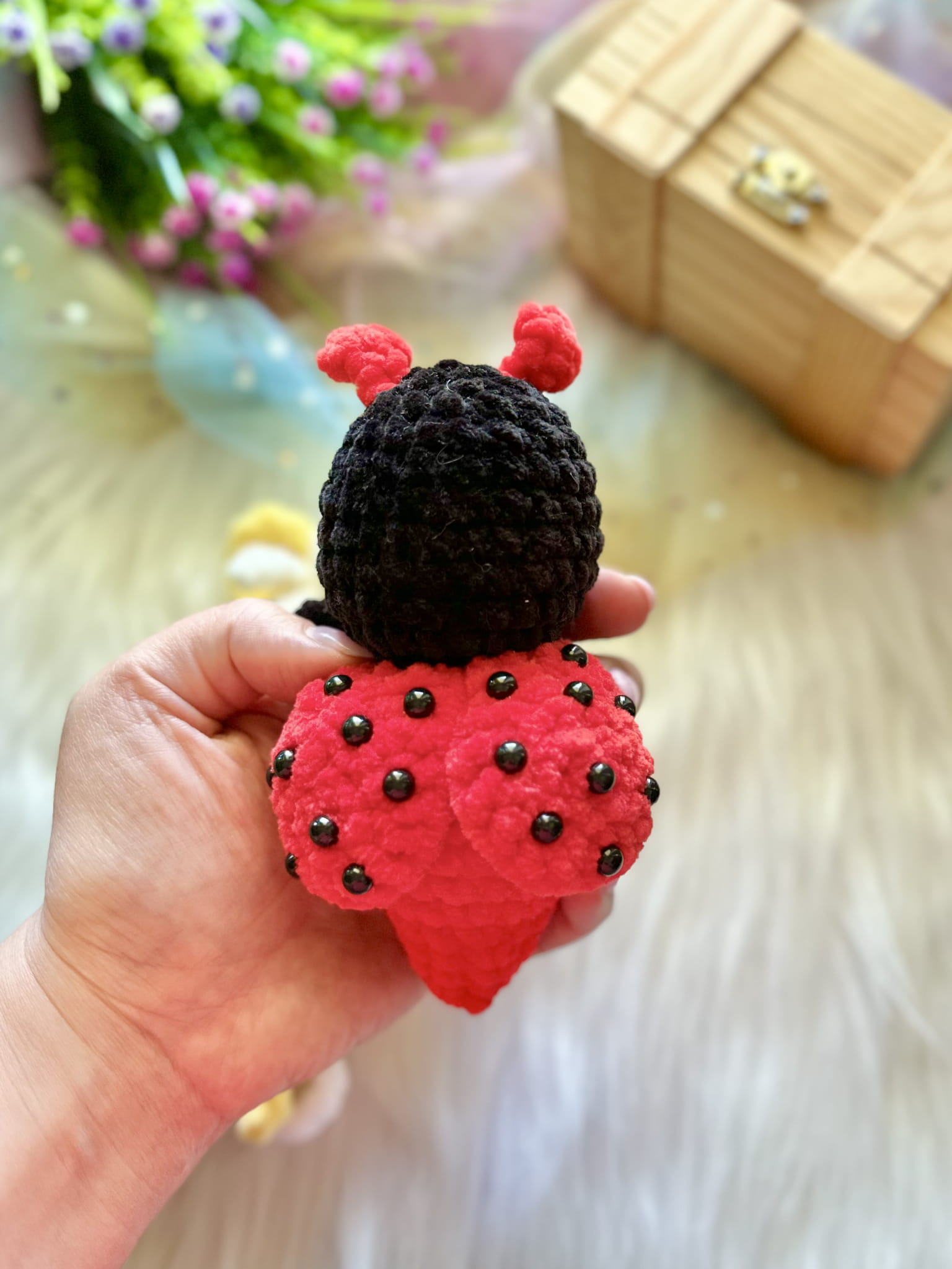Rękodzieło - brelok zawieszka biedronka wykonana szydełkiem