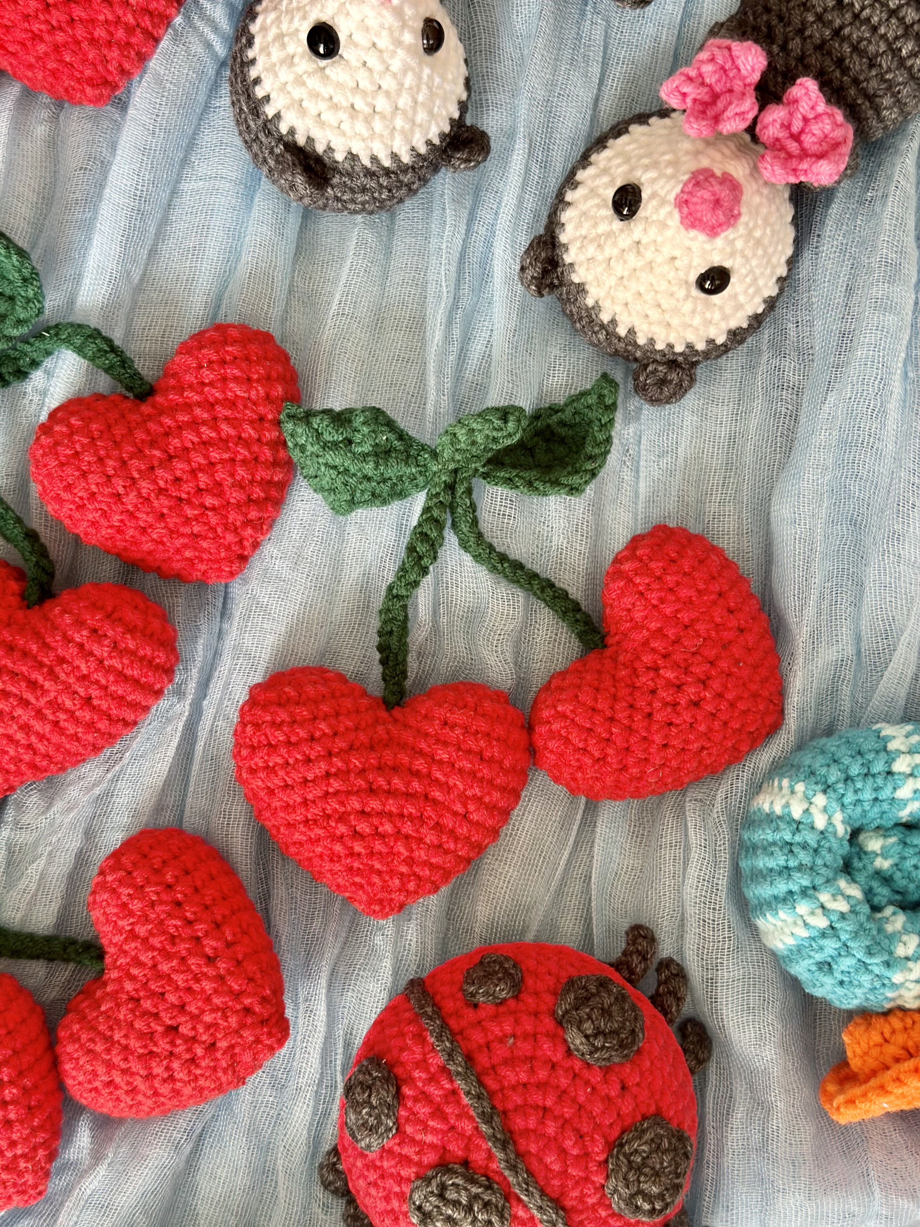 Rękodzieło - brelok zawieszka czereśnia wiśnia serce wykonane szydełkiem