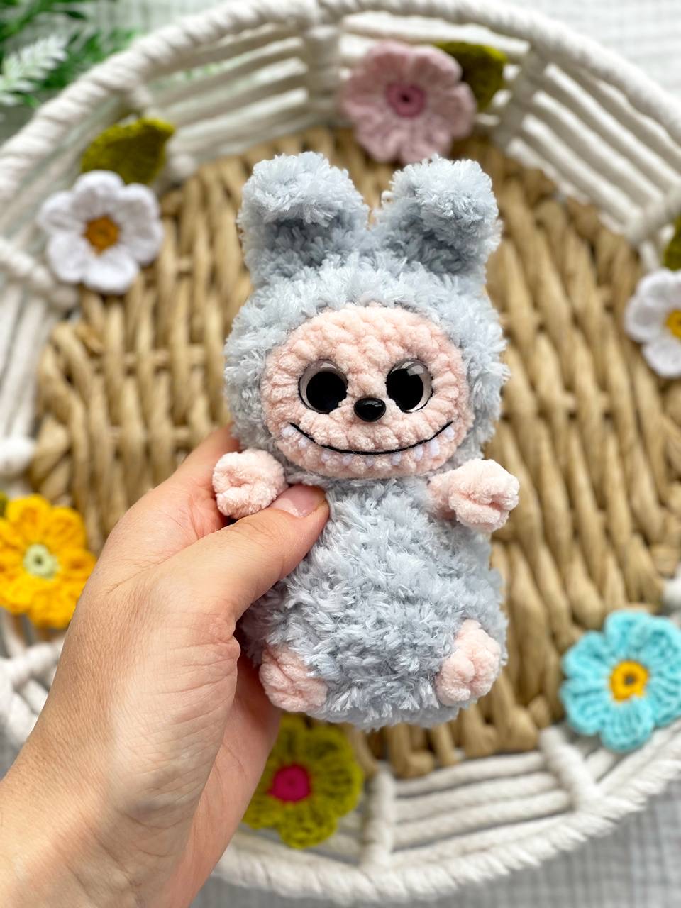 Rękodzieło - brelok zawieszka postać inspirowana labubu wykonana szydełkiem