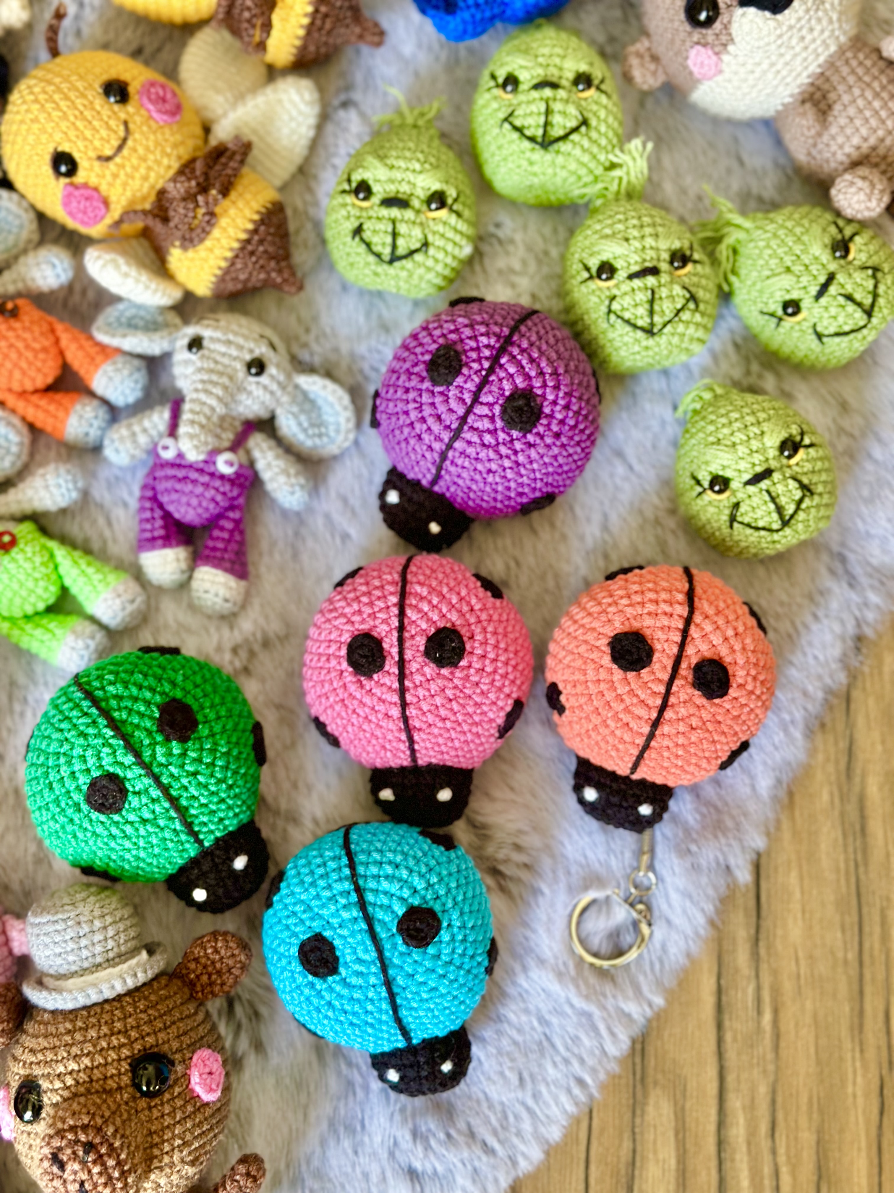 Rękodzieło - brelok/zawieszka biedronka fiolet wykonana szydełkiem