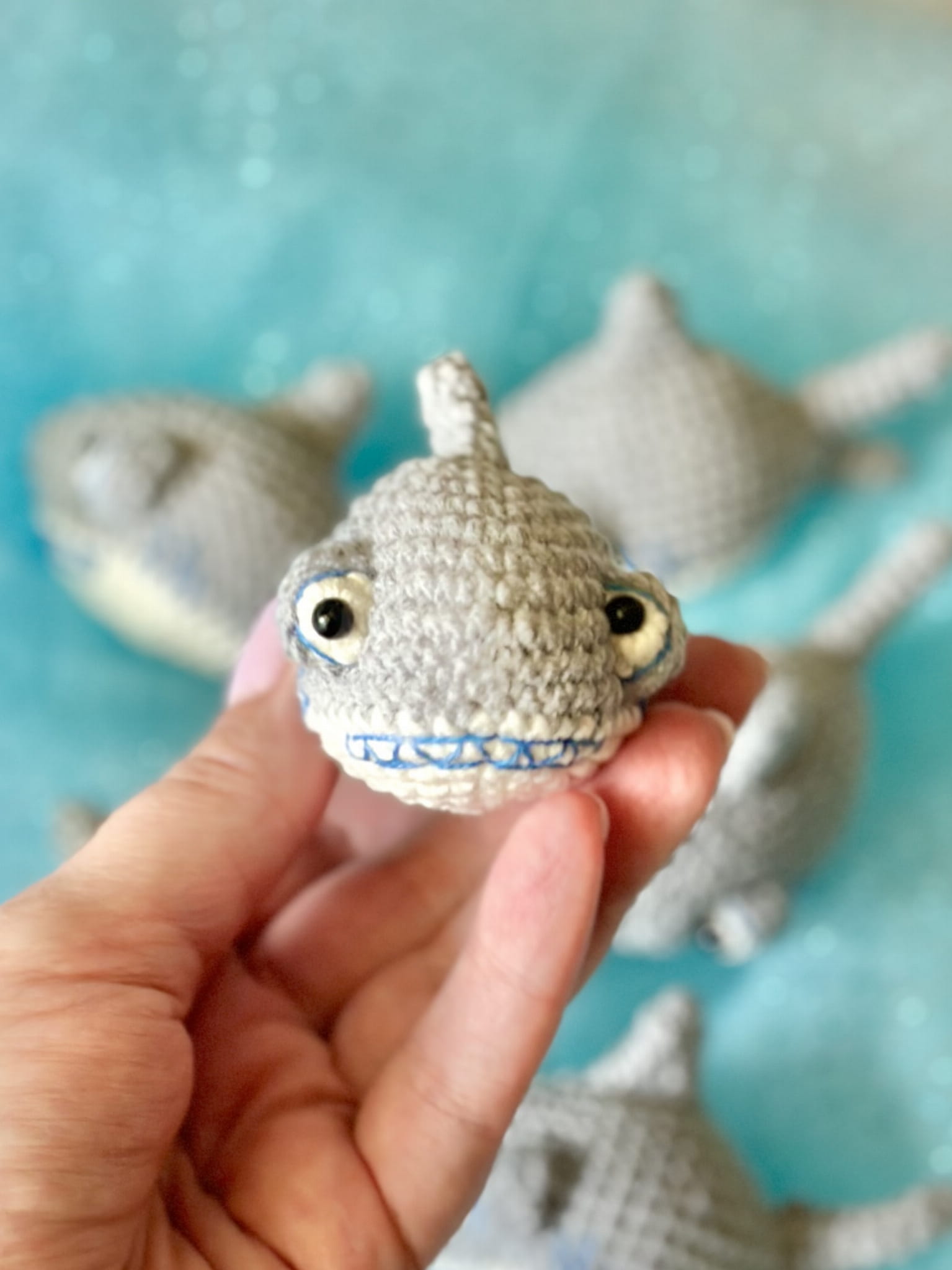 Rękodzieło - brelok/zawieszka rekin wykonany szydełkiem