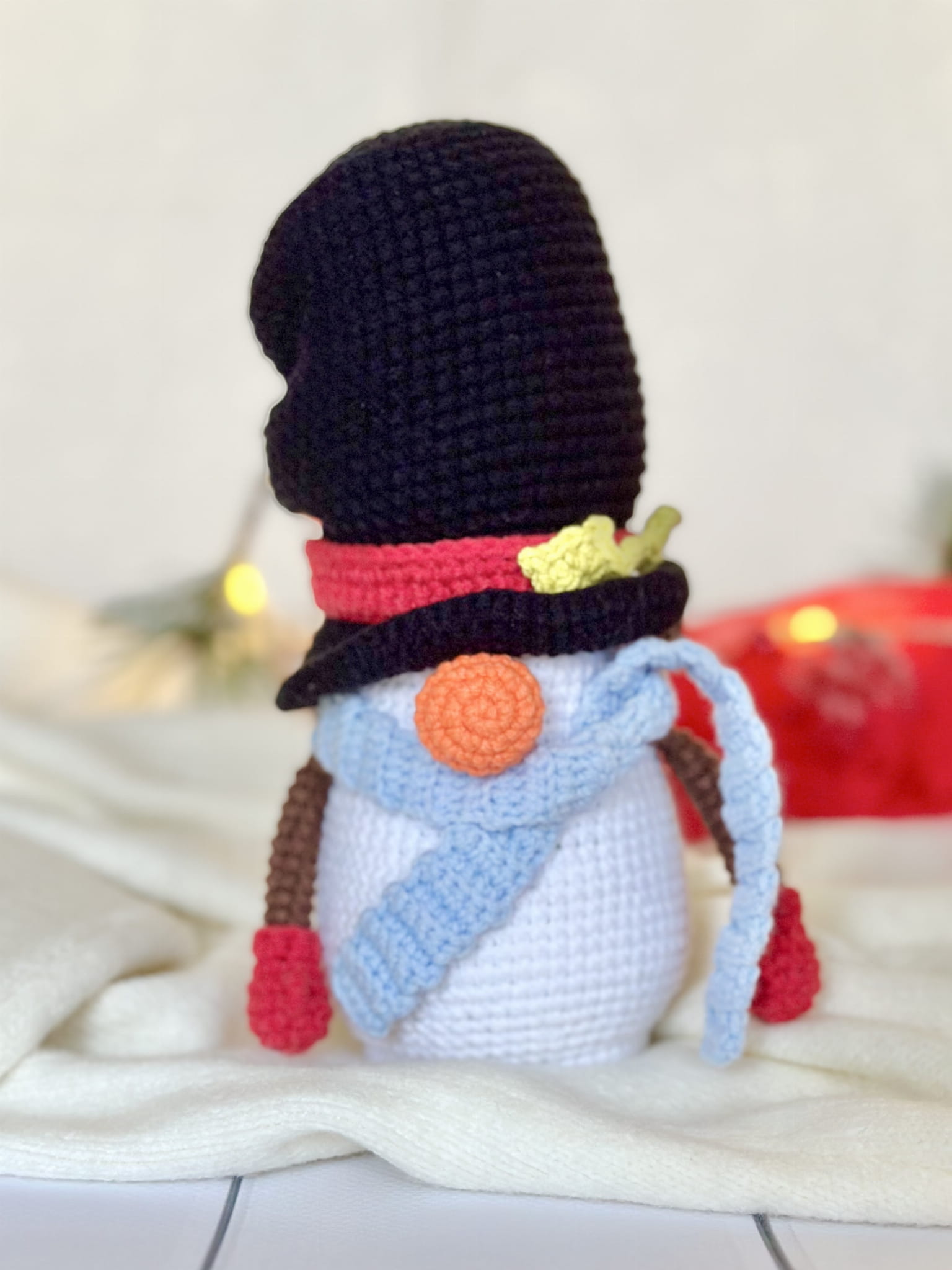 Rękodzieło - gnom skrzat bałwan wykonany szydełkiem