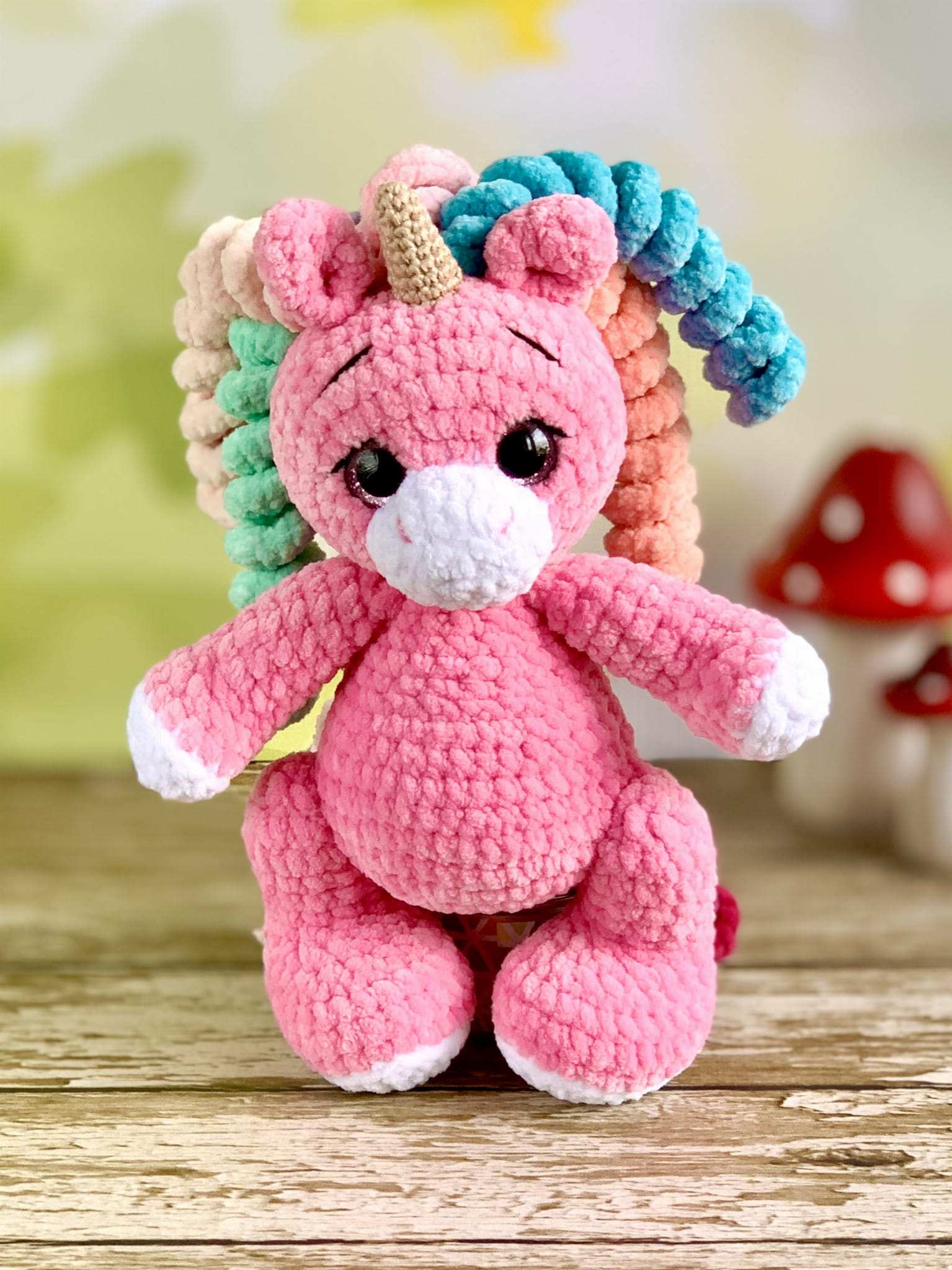 Rękodzieło - jednorożec, wykonany na szydełku