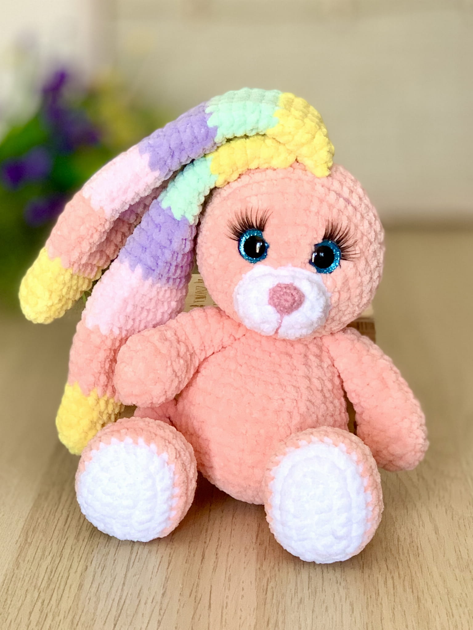 Rękodzieło - królik uszy tęcza wykonany na szydełku
