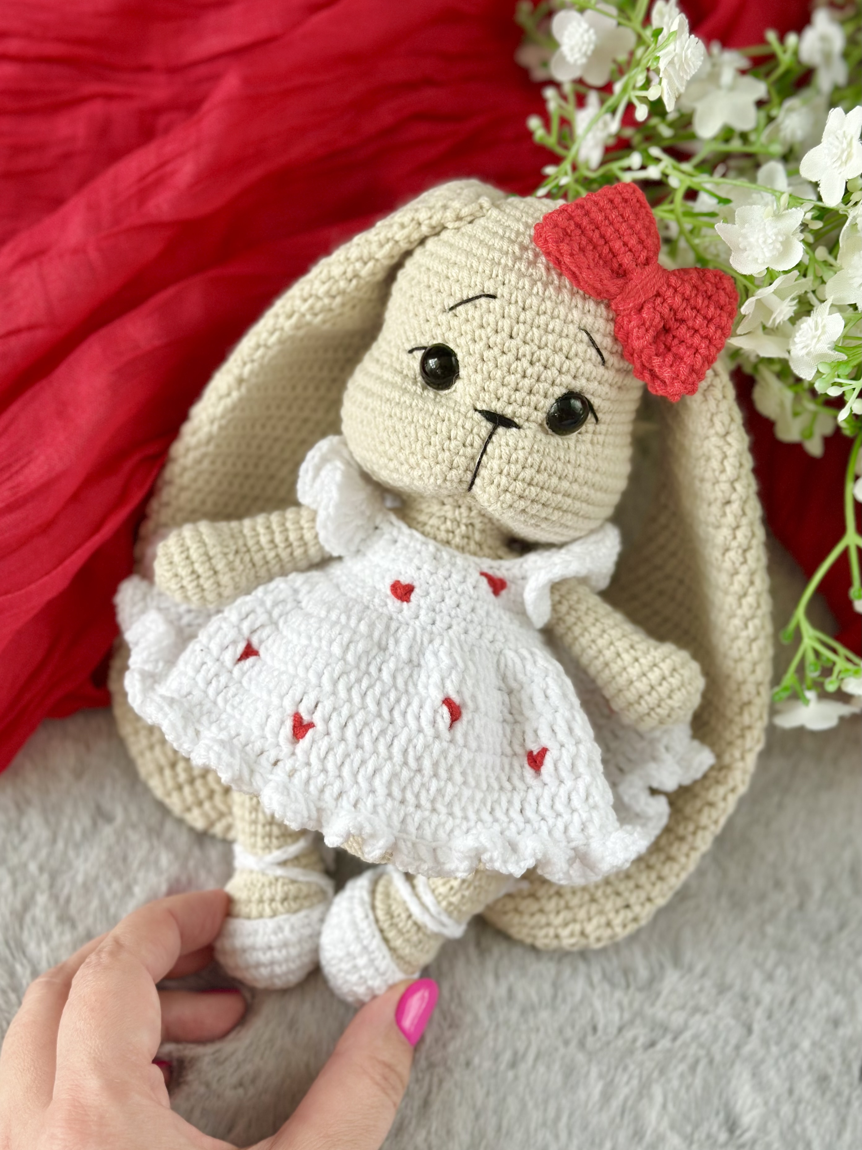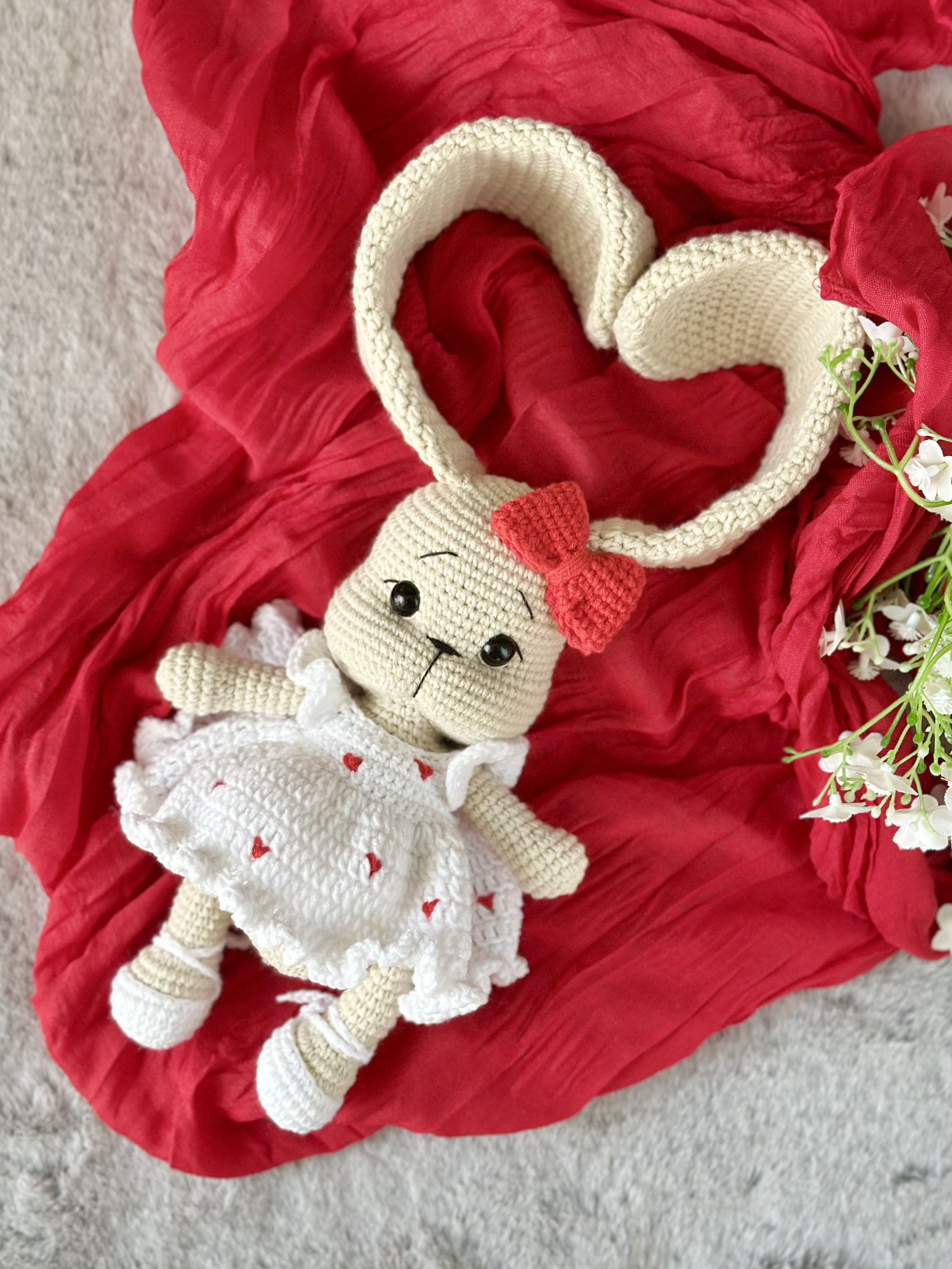 Rękodzieło - królik uszy tęcza wykonany na szydełku