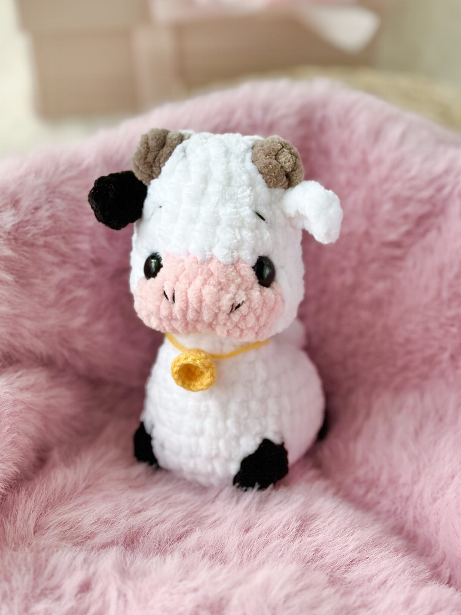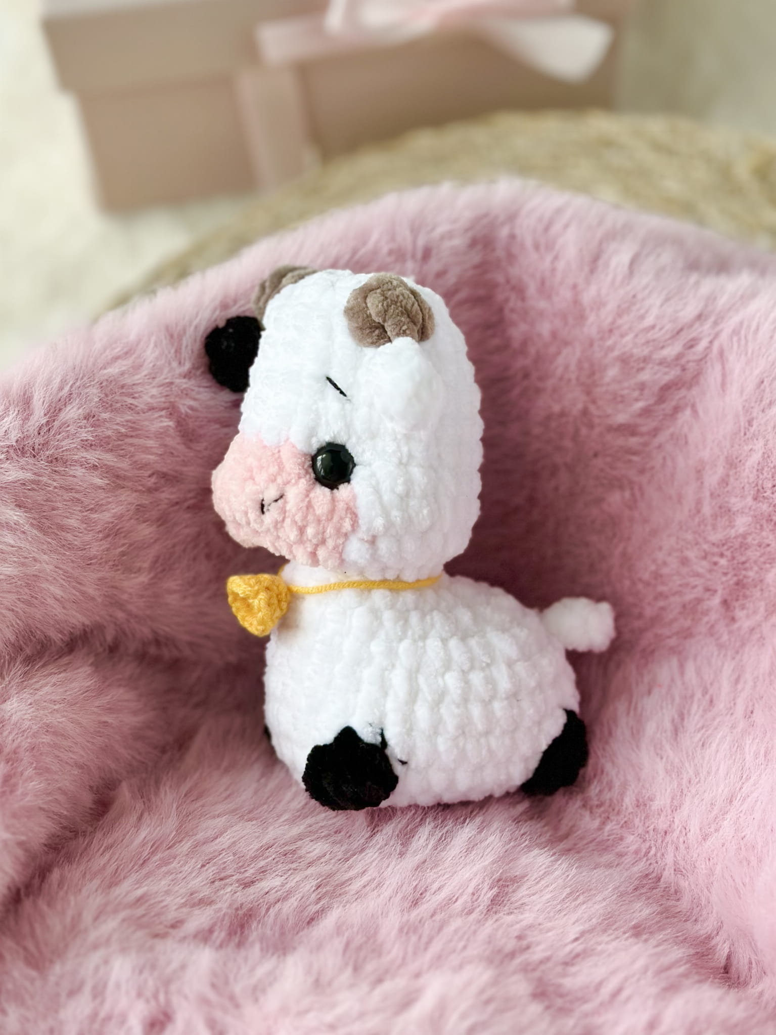 Rękodzieło - krowa brelok zawieszka wykonana szydełkiem