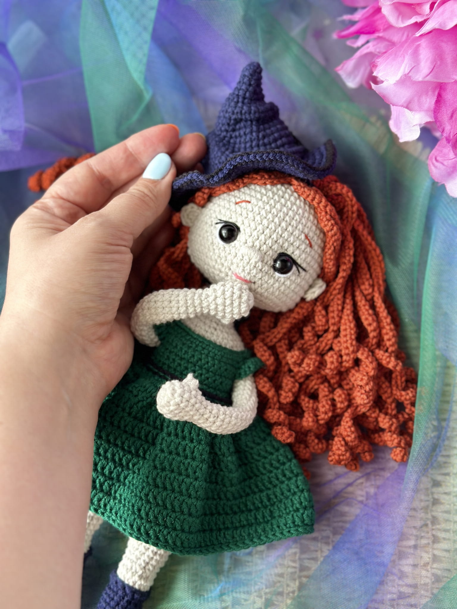 Rękodzieło - lalka czarownica wykonana szydełkiem
