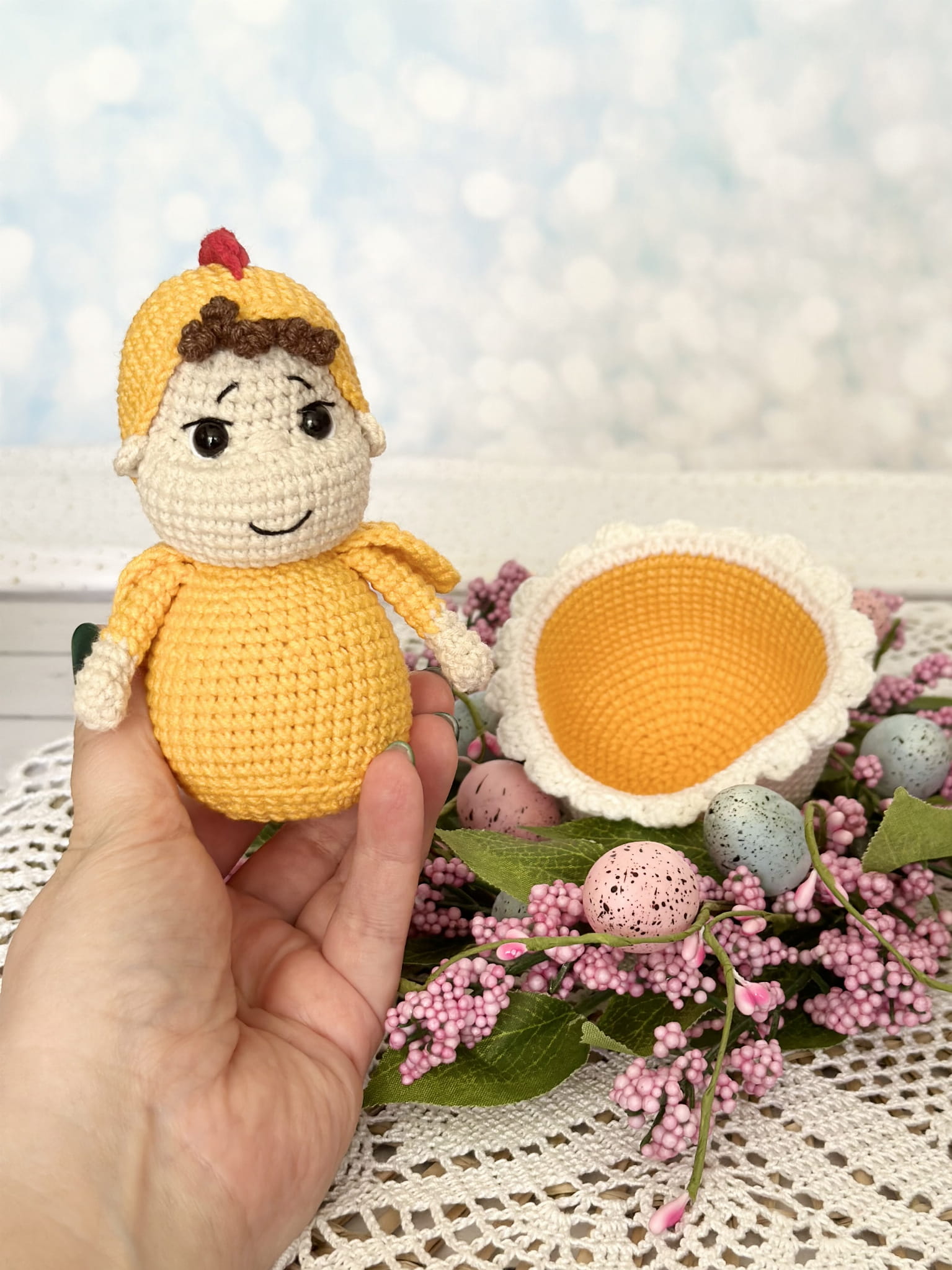 Rękodzieło - lalka kurczak wykonany szydełkiem