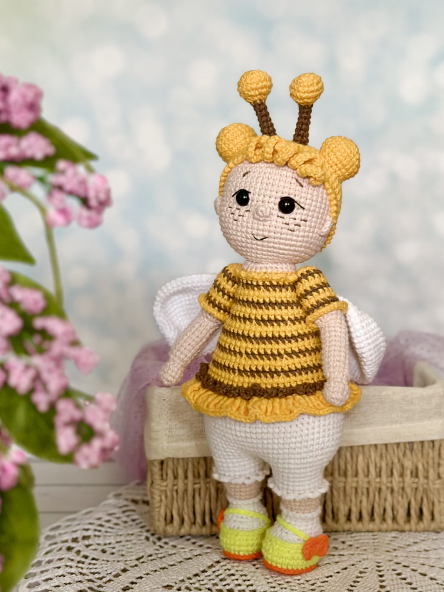 Rękodzieło - lalka pszczoła wykonana szydełkiem