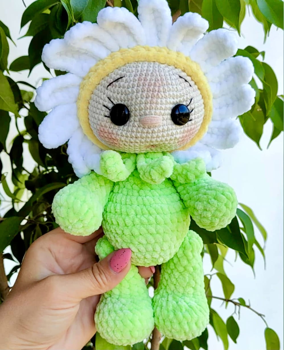 Rękodzieło - lalka stokrotka wykonana na szydełku
