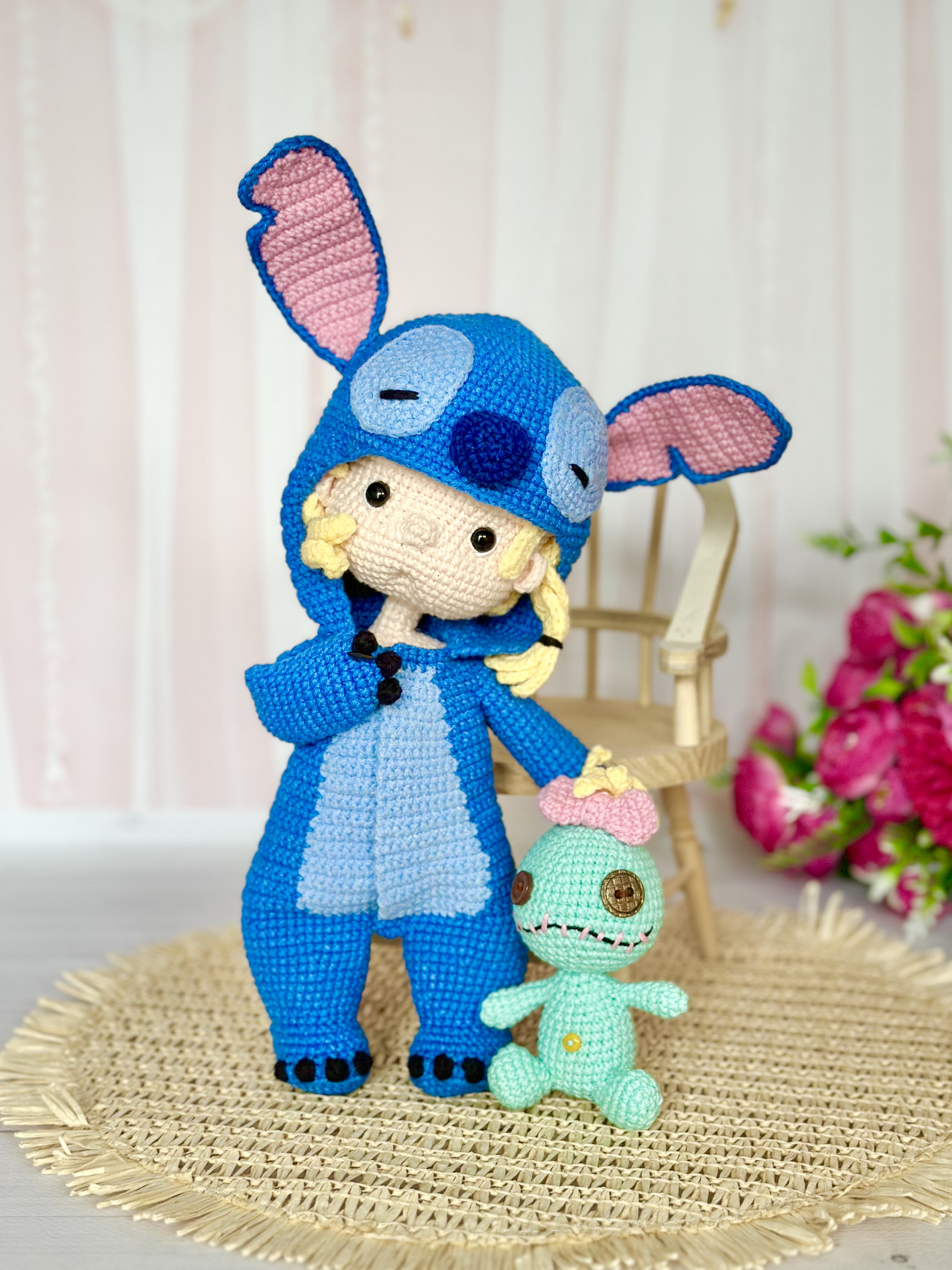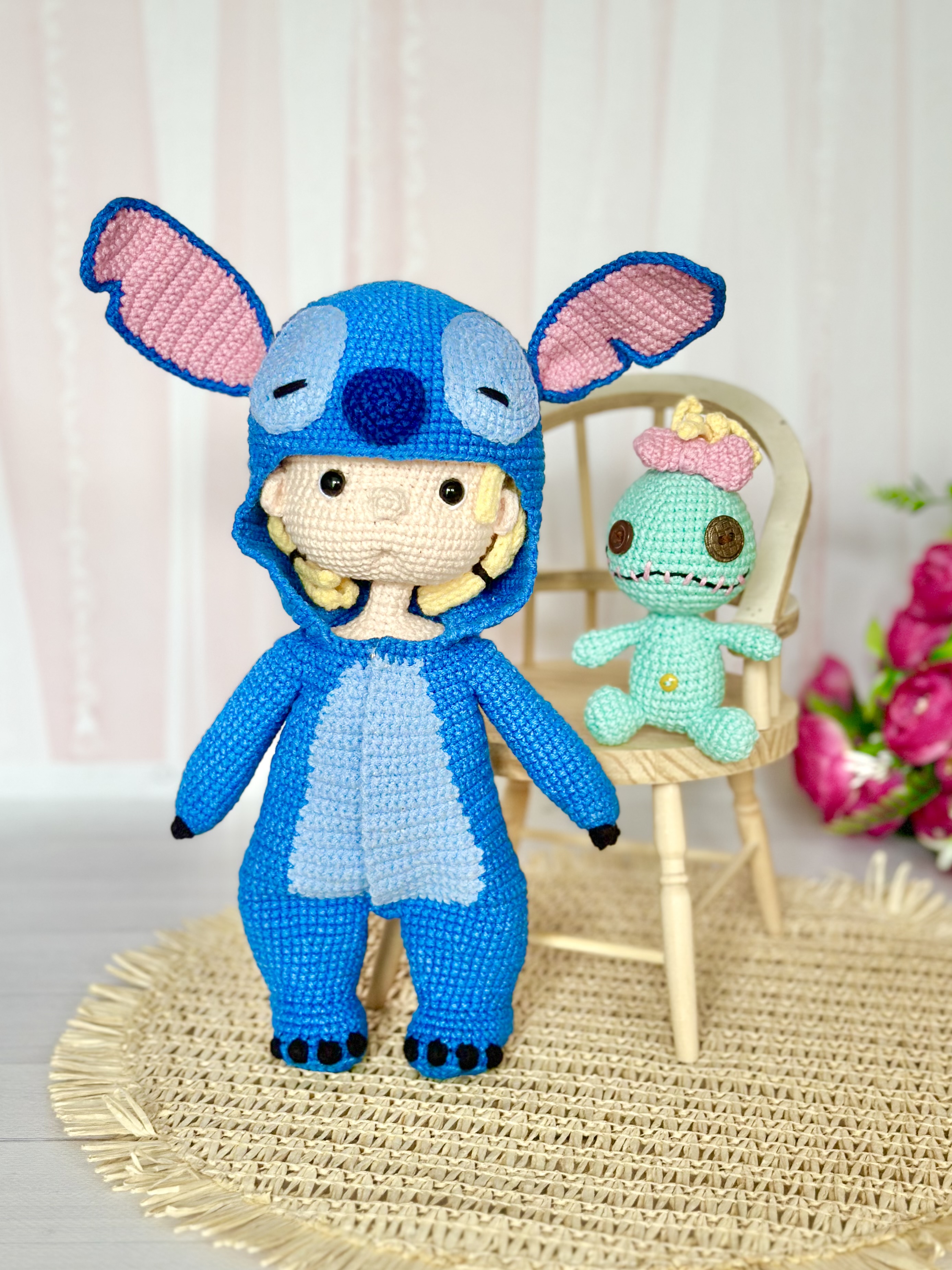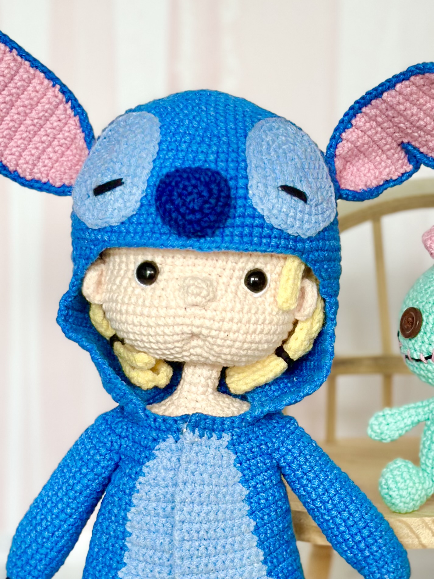 Rękodzieło - lalka w kostiumie stitch wykonany szydełkiem