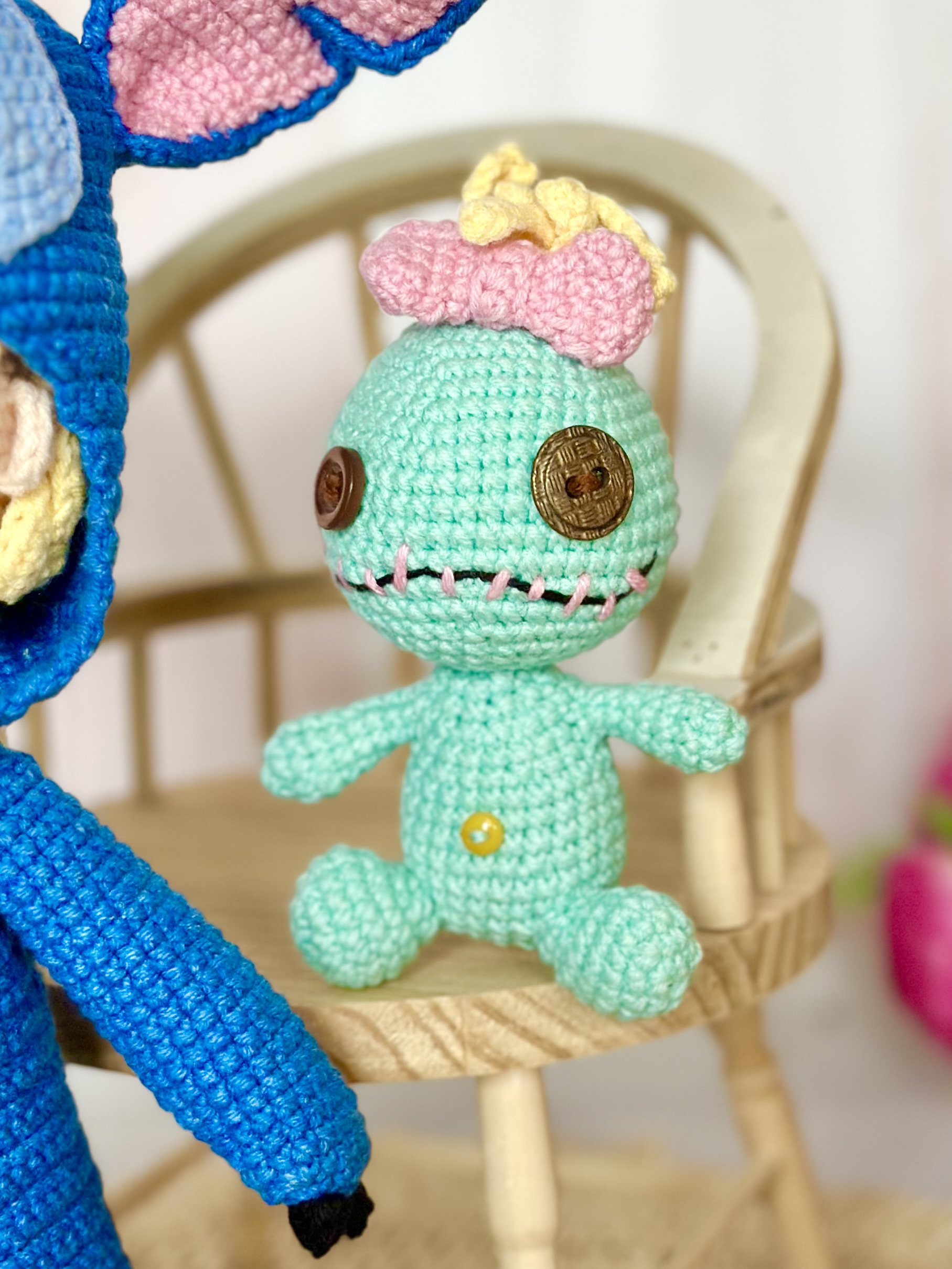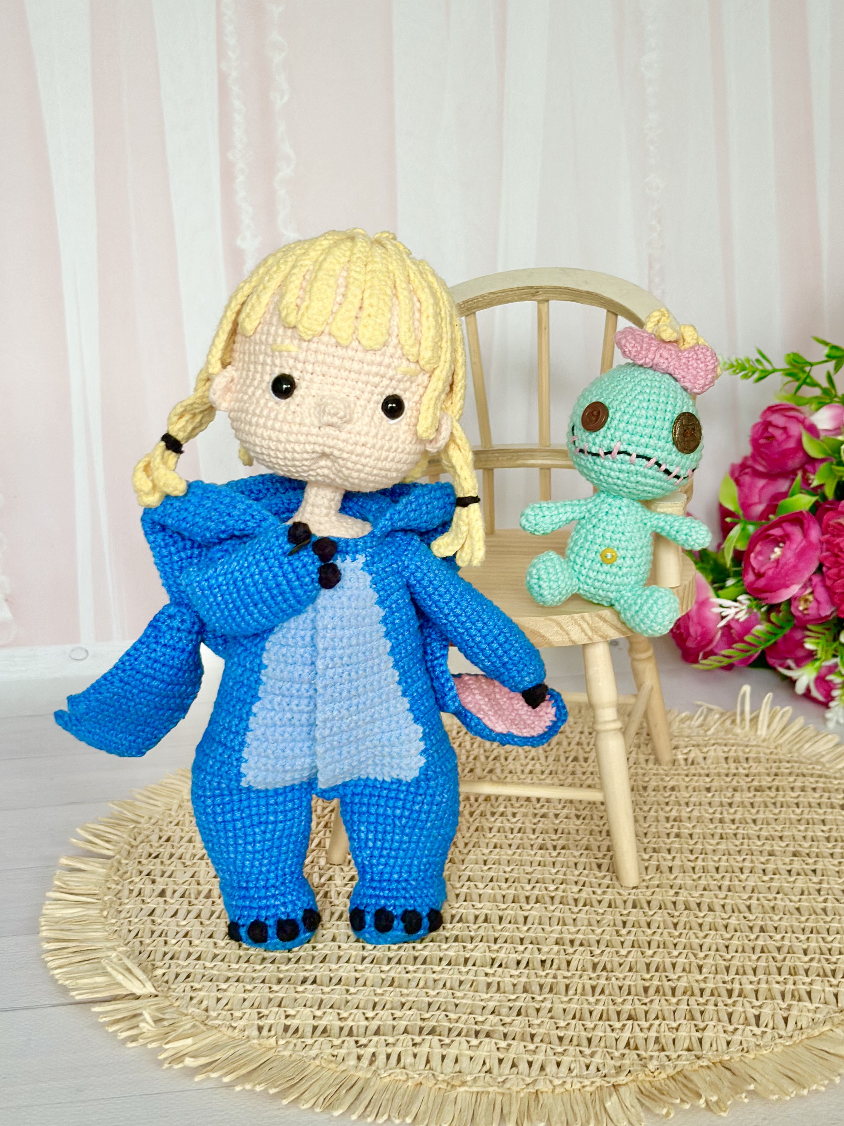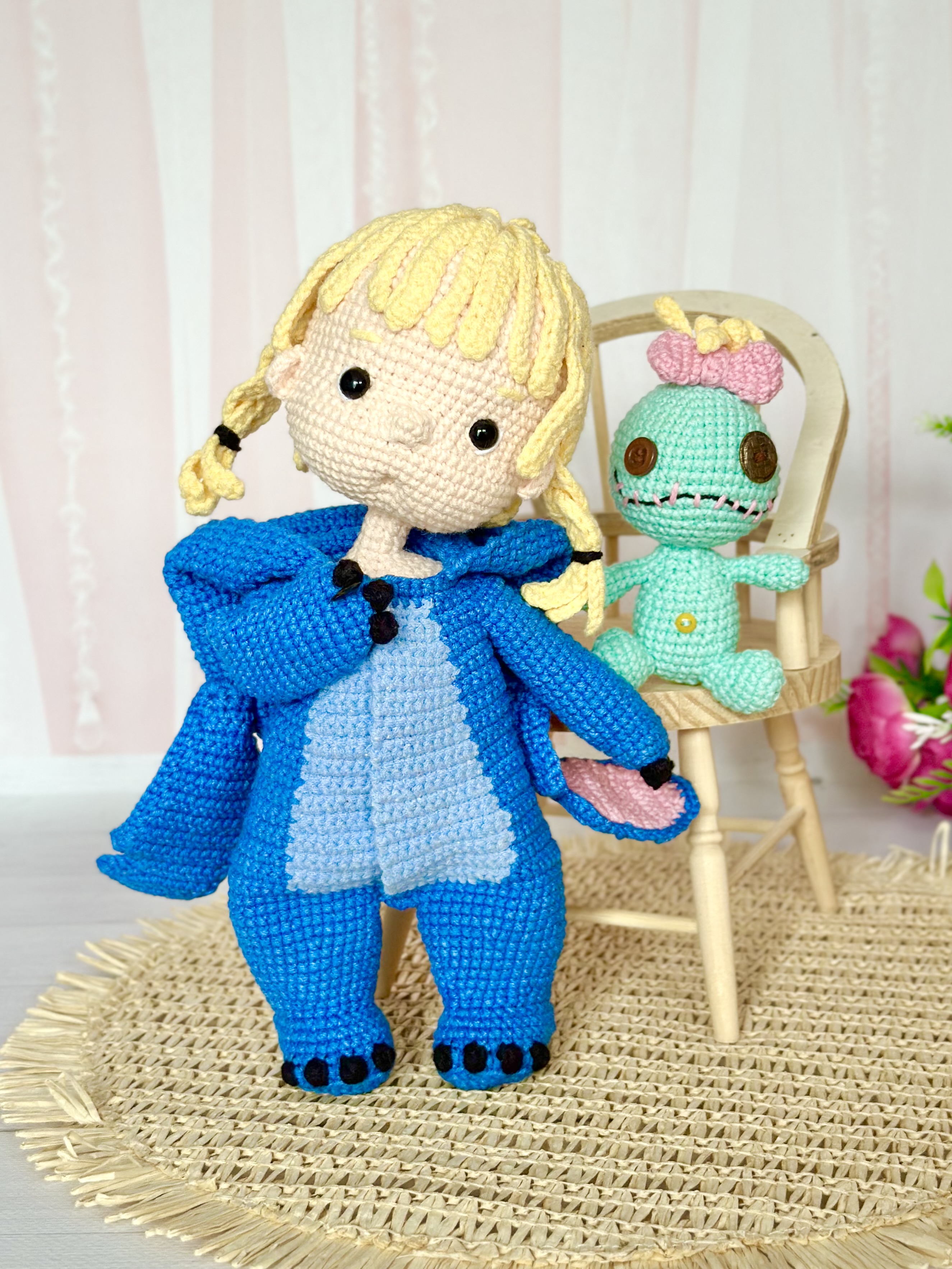 Rękodzieło - lalka w kostiumie stitch wykonany szydełkiem