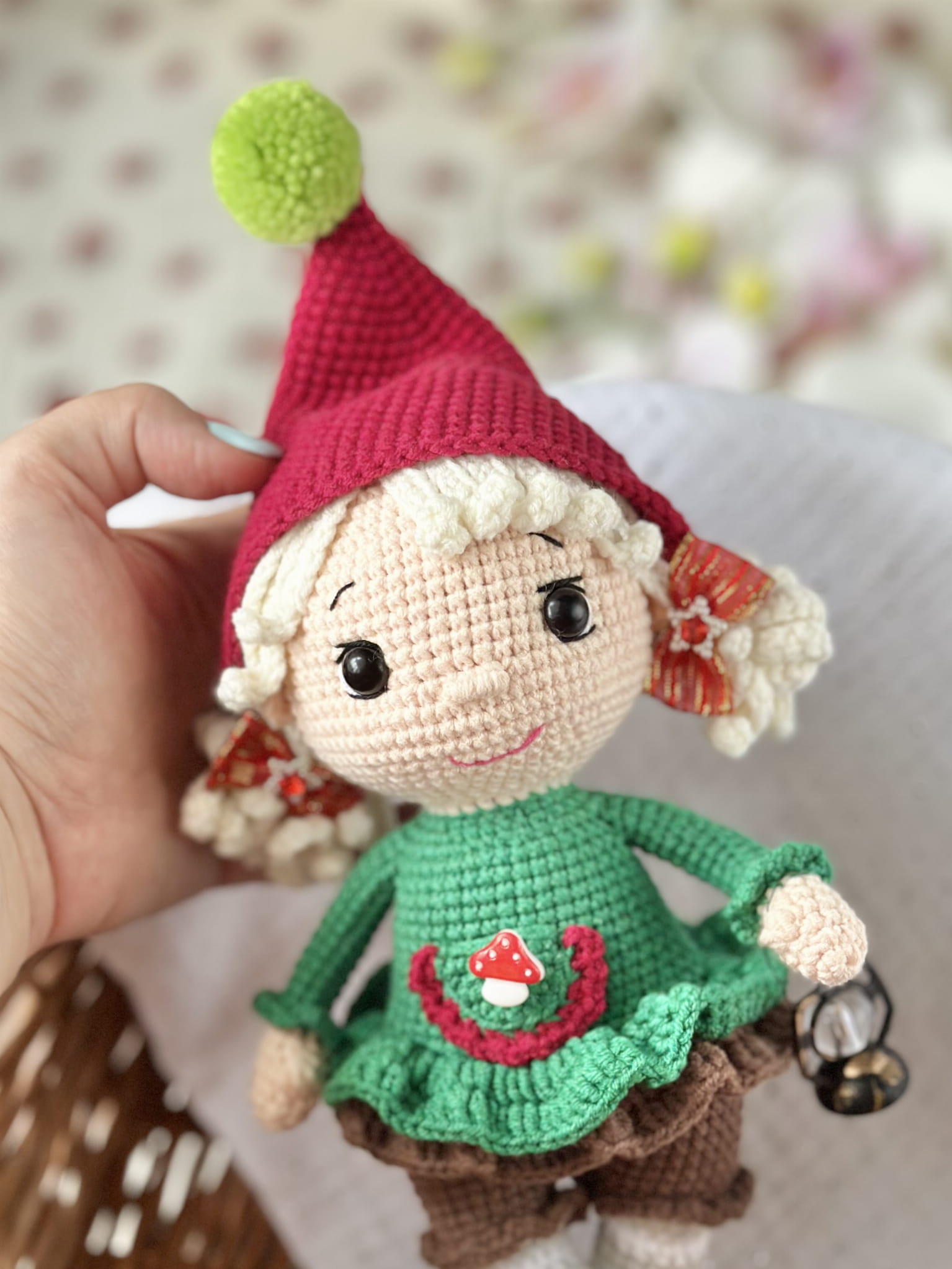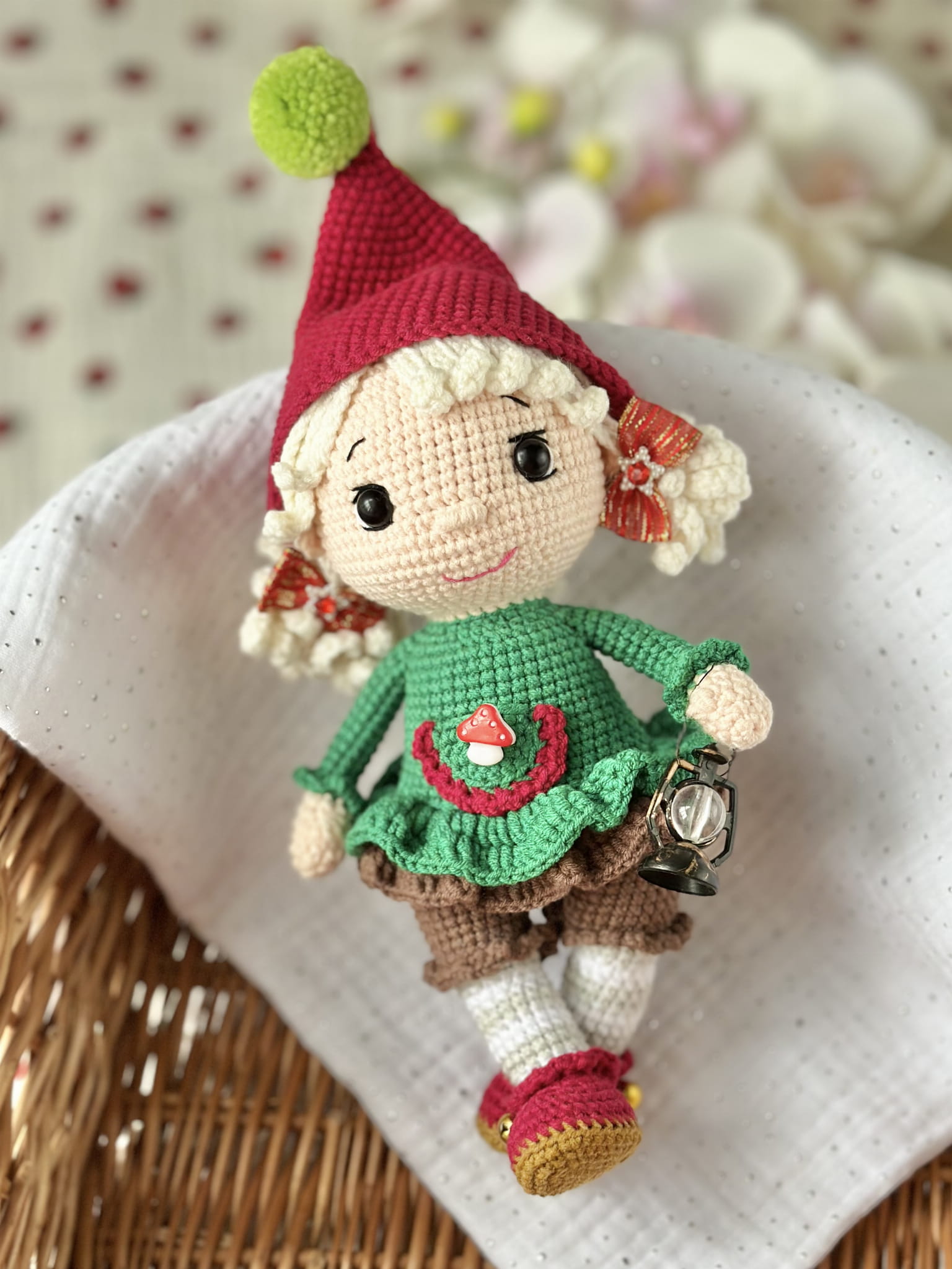 Rękodzieło - lalka wróżka elf wykonana szydełkiem