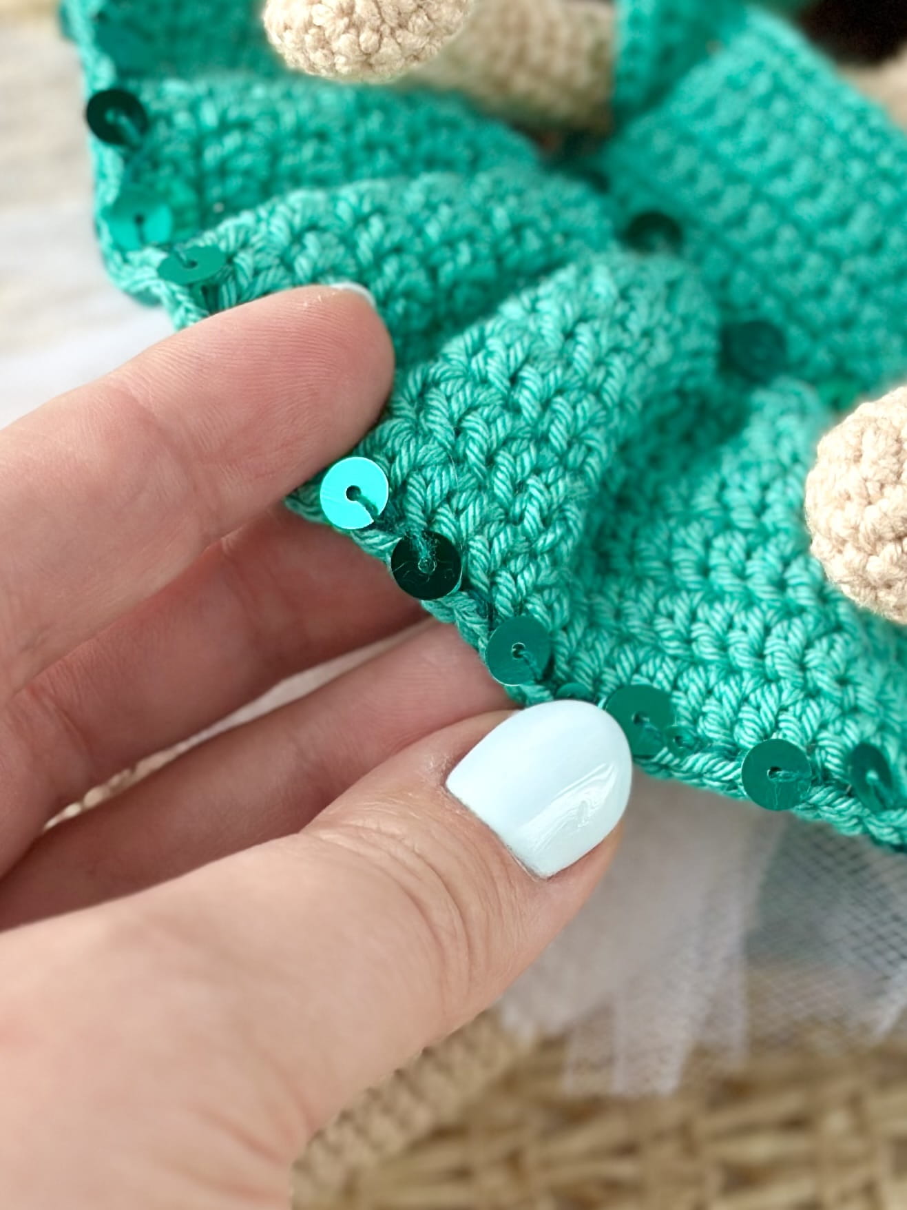 Wykonana w 100% ręcznie, na szydełku, z certyfikowanej włóczki, która się nie mechaci, ani nie rozciąga