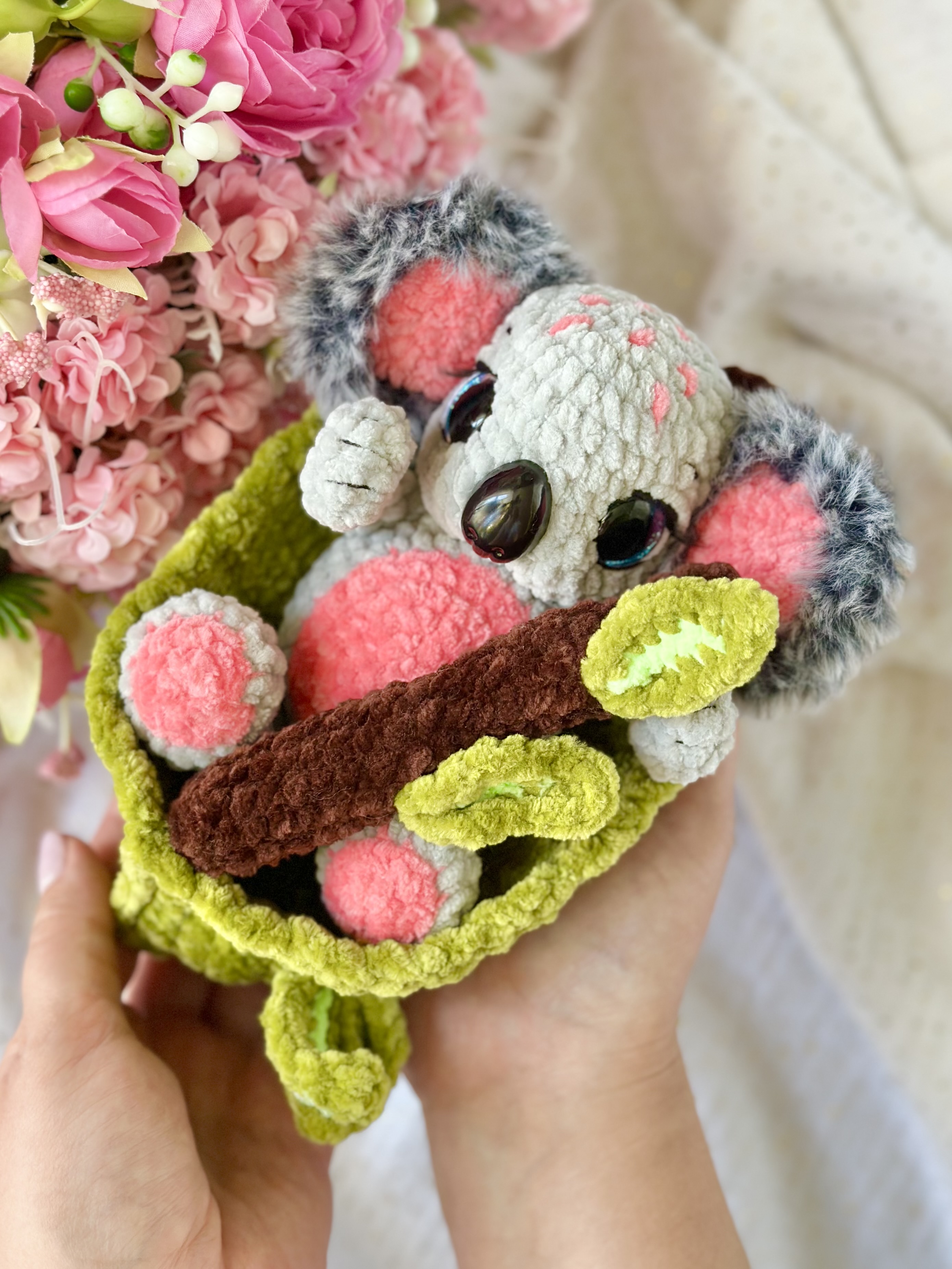 Rękodzieło - miś koala + koszyczek + bambus wykonany szydełkiem