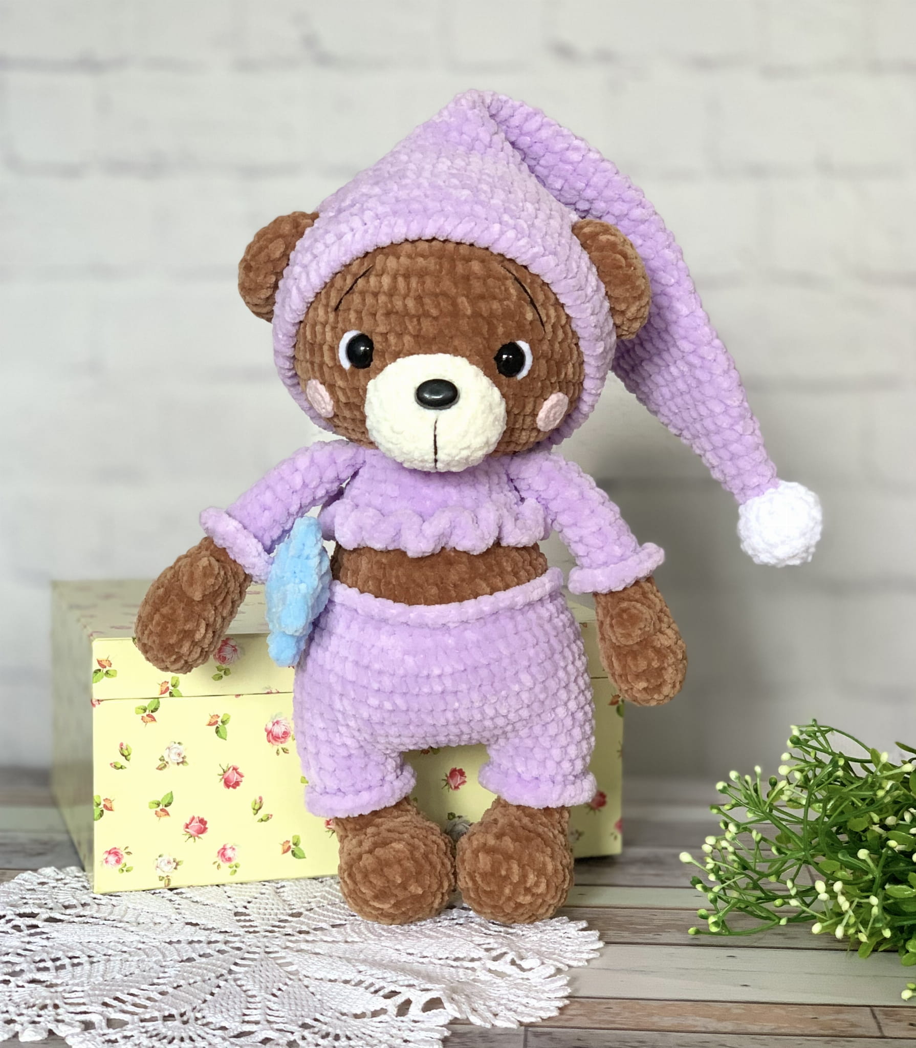 Rękodzieło - miś w piżamie wykonany szydełkiem