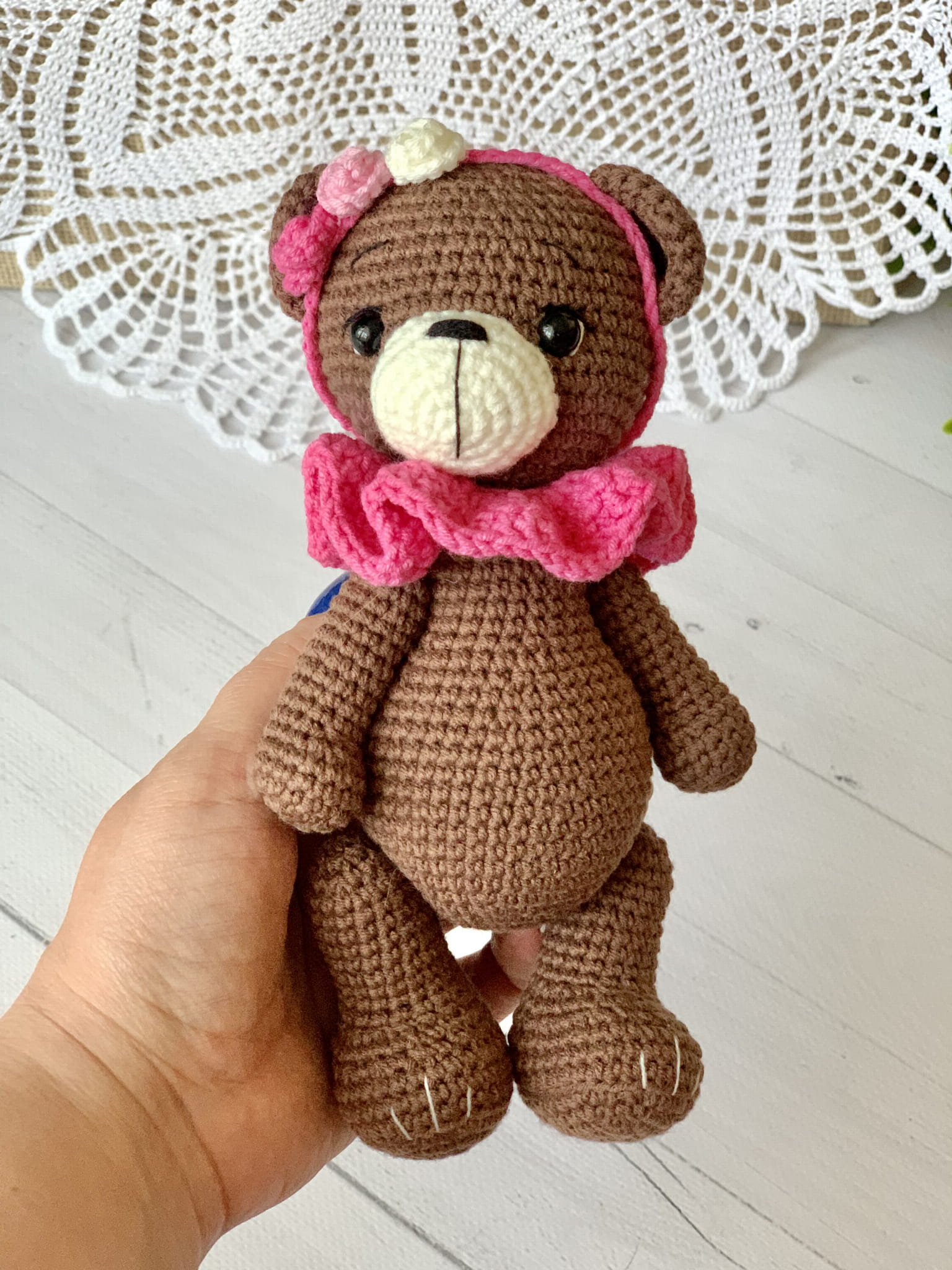 - Nasze maskotki wykonane są z hipoalergicznej włóczki, która się nie rozciąga ani nie mechaci. Dzięki temu maskotka nie straci kształtu, ani wyglądu