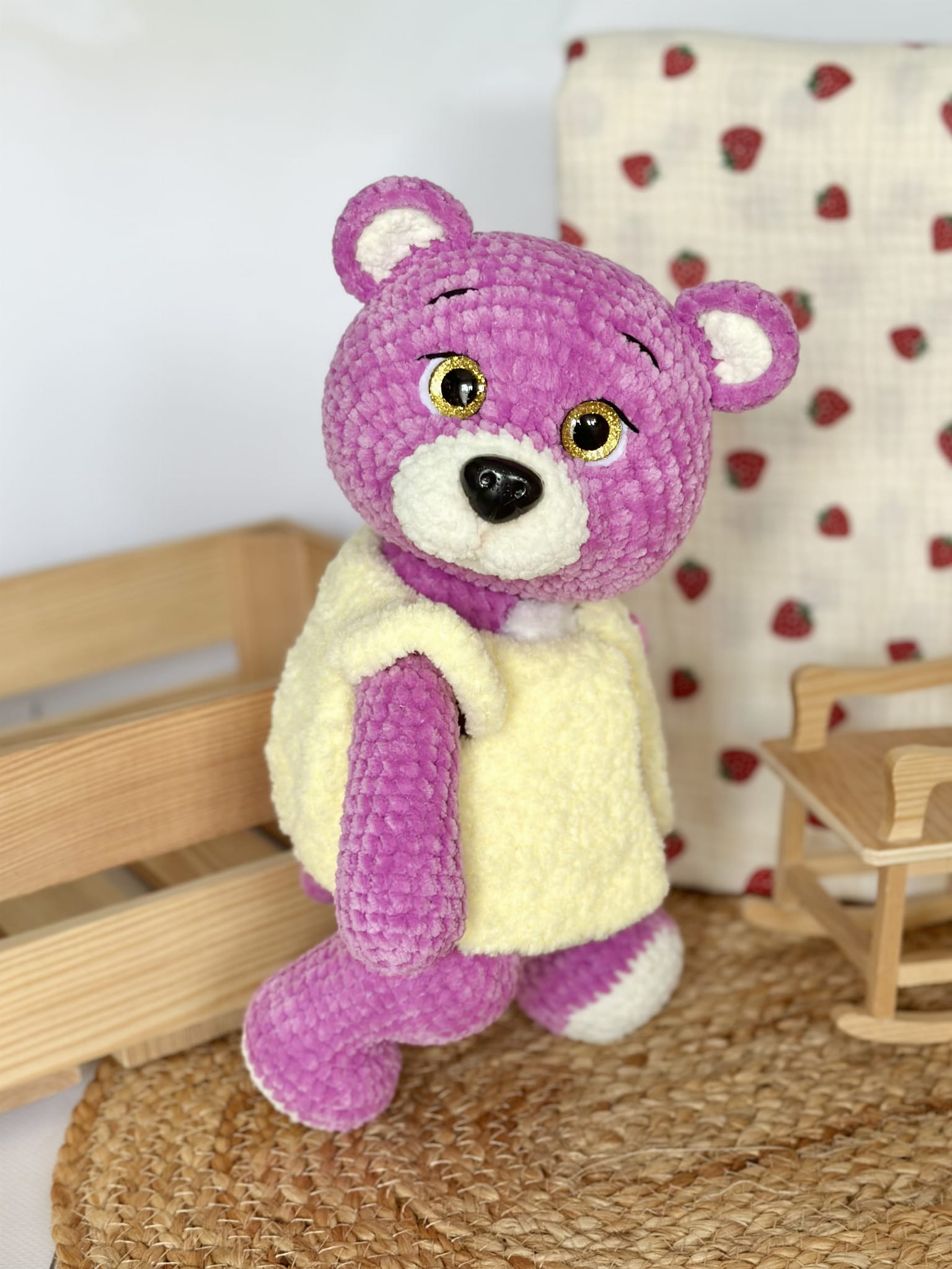- Nasze maskotki wykonane są z hipoalergicznej włóczki, która się nie rozciąga ani nie mechaci. Dzięki temu maskotka nie straci kształtu, ani wyglądu