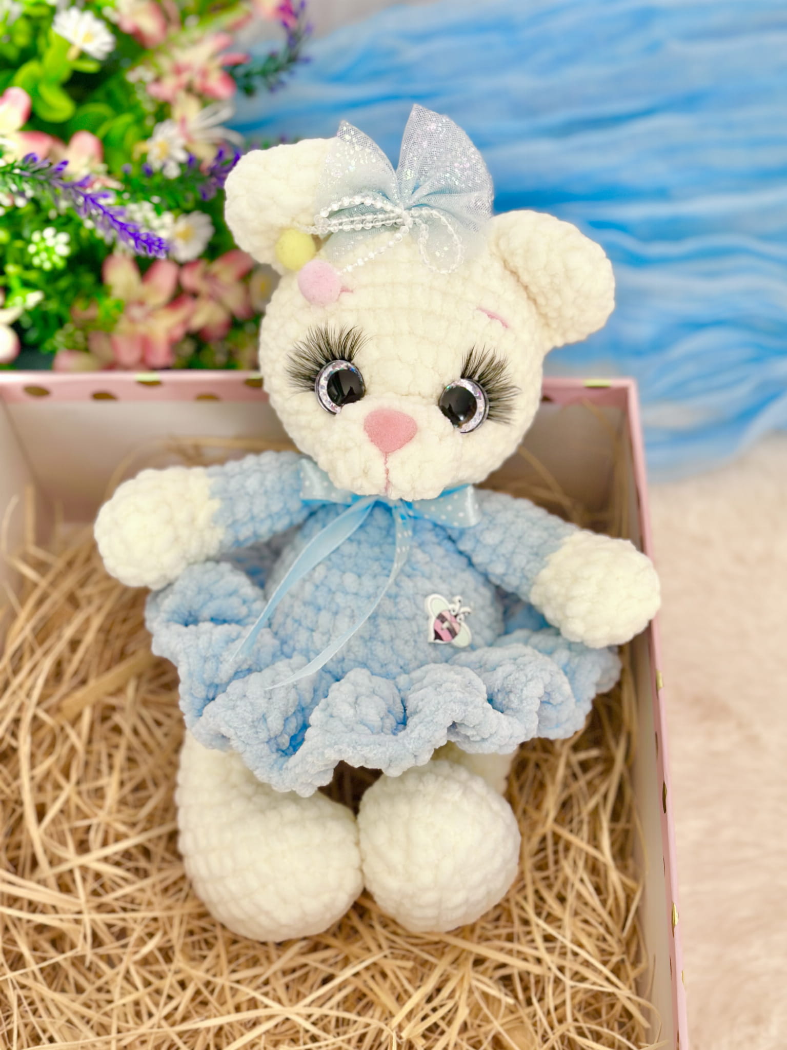 - Nasze maskotki wykonane są z hipoalergicznej włóczki, która się nie rozciąga ani nie mechaci. Dzięki temu maskotka nie straci kształtu, ani wyglądu