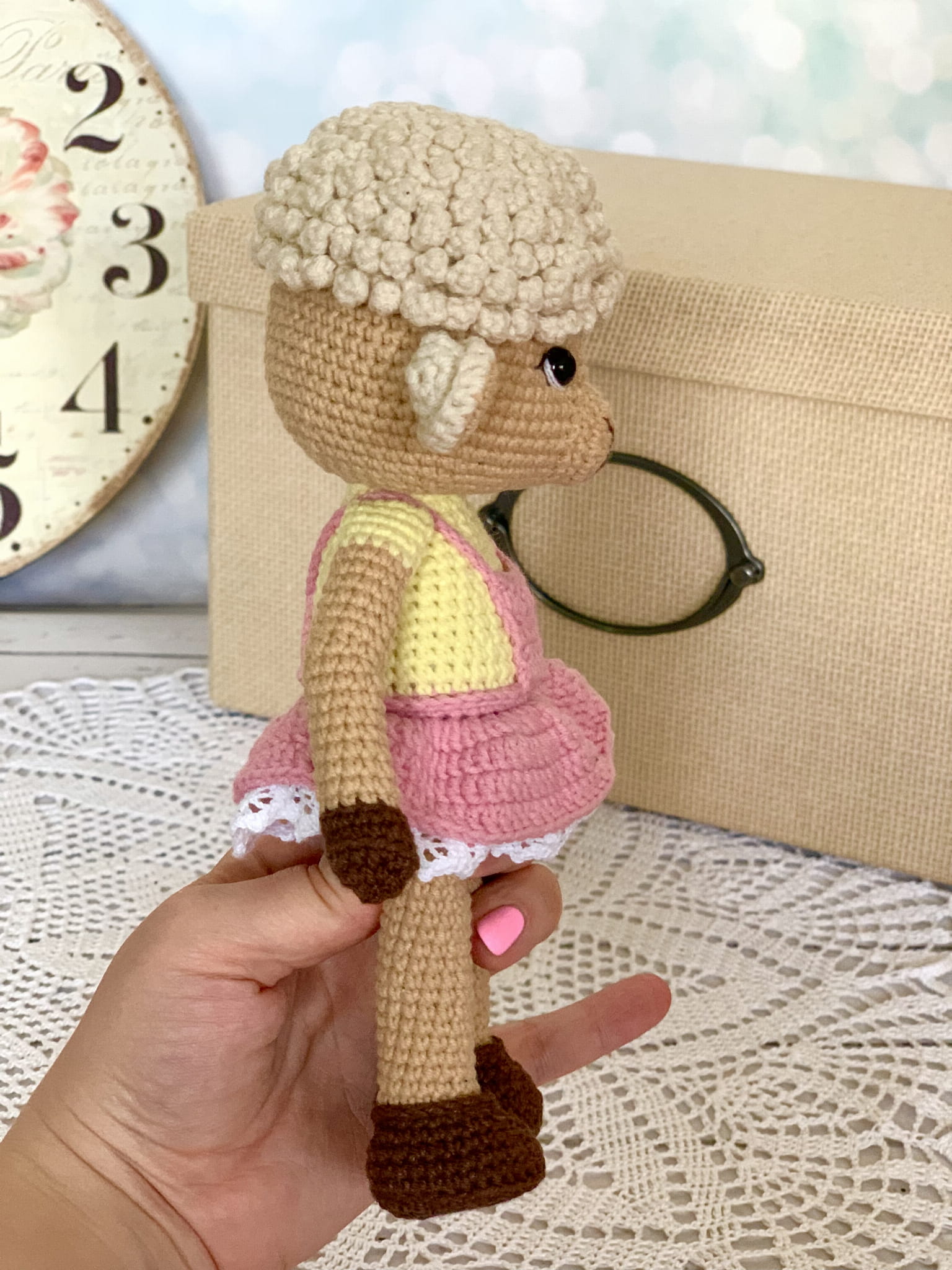 Rękodzieło - owieczka wykonana na szydełku