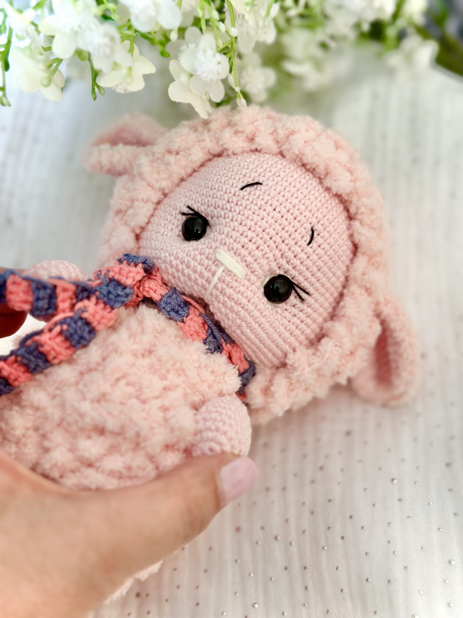 - Nasze maskotki wykonane są z hipoalergicznej włóczki, która się nie rozciąga ani nie mechaci. Dzięki temu maskotka nie straci kształtu, ani wyglądu