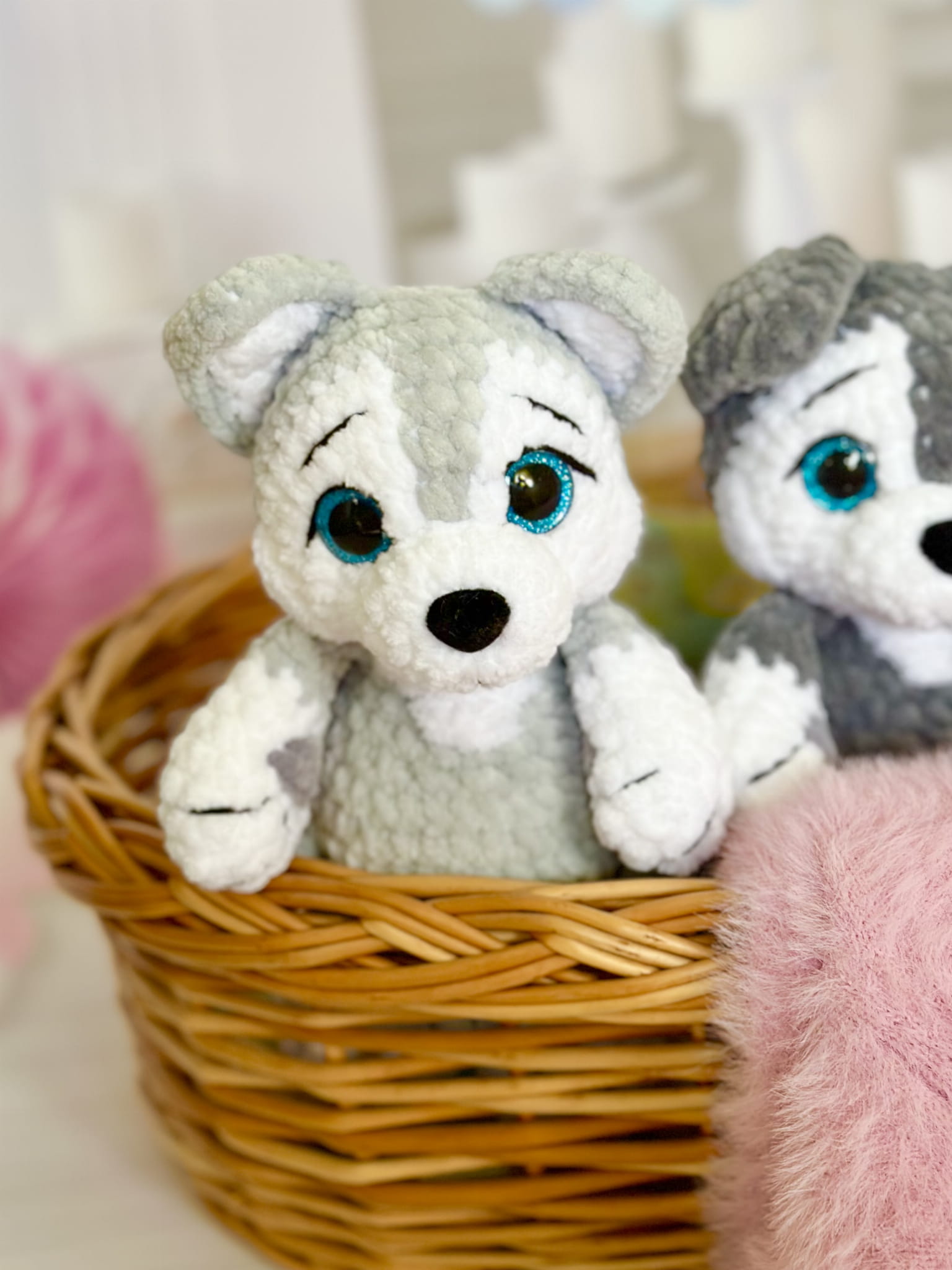 Rękodzieło - pies husky (jasnoszary) wykonany na szydełku