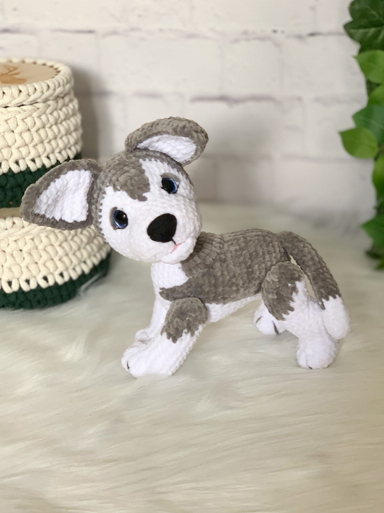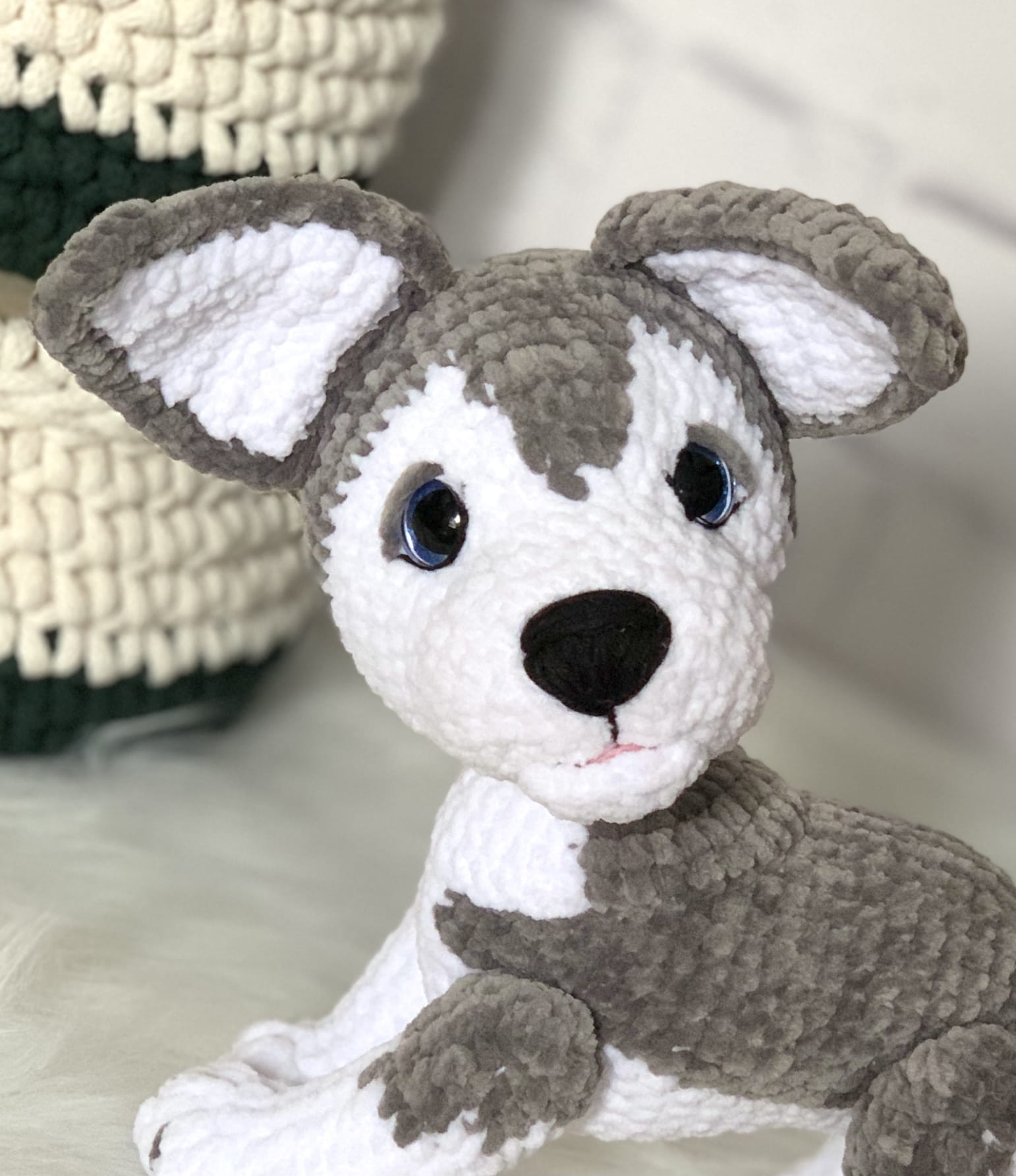 Rękodzieło - pies szczeniaczek husky wykonany na szydełku