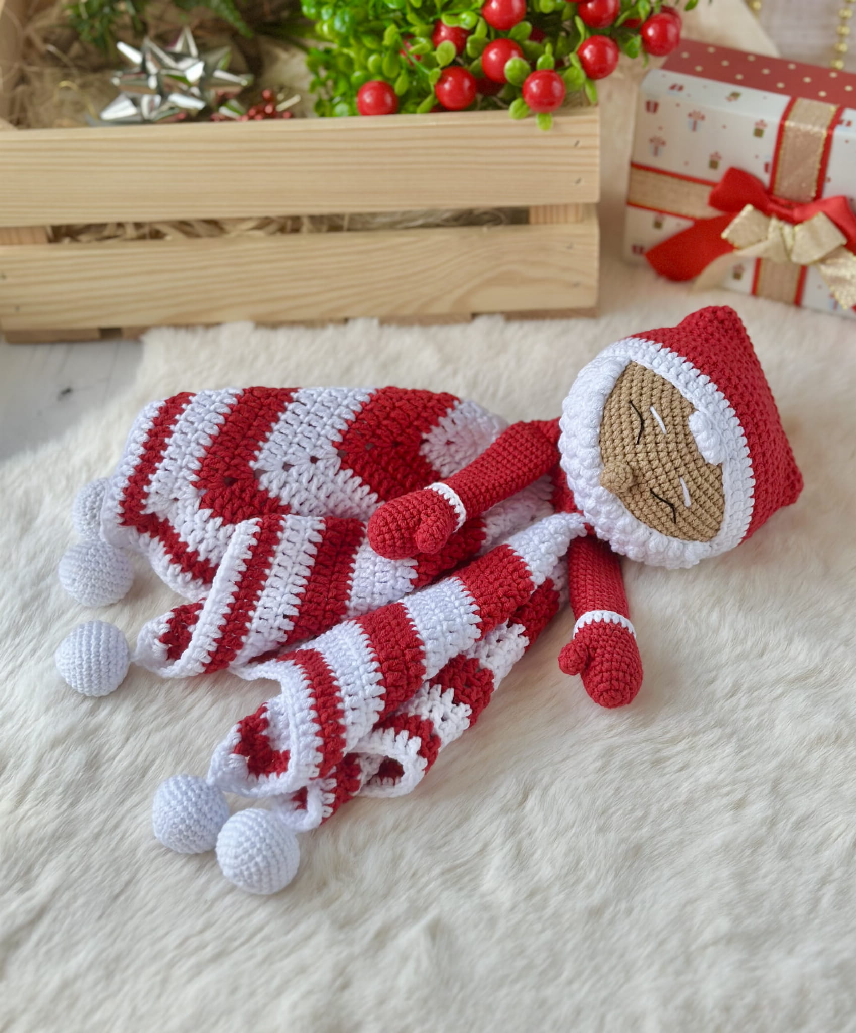 Rękodzieło - skrzat mikołaj gwiazdor komforter wykonany szydełkiem