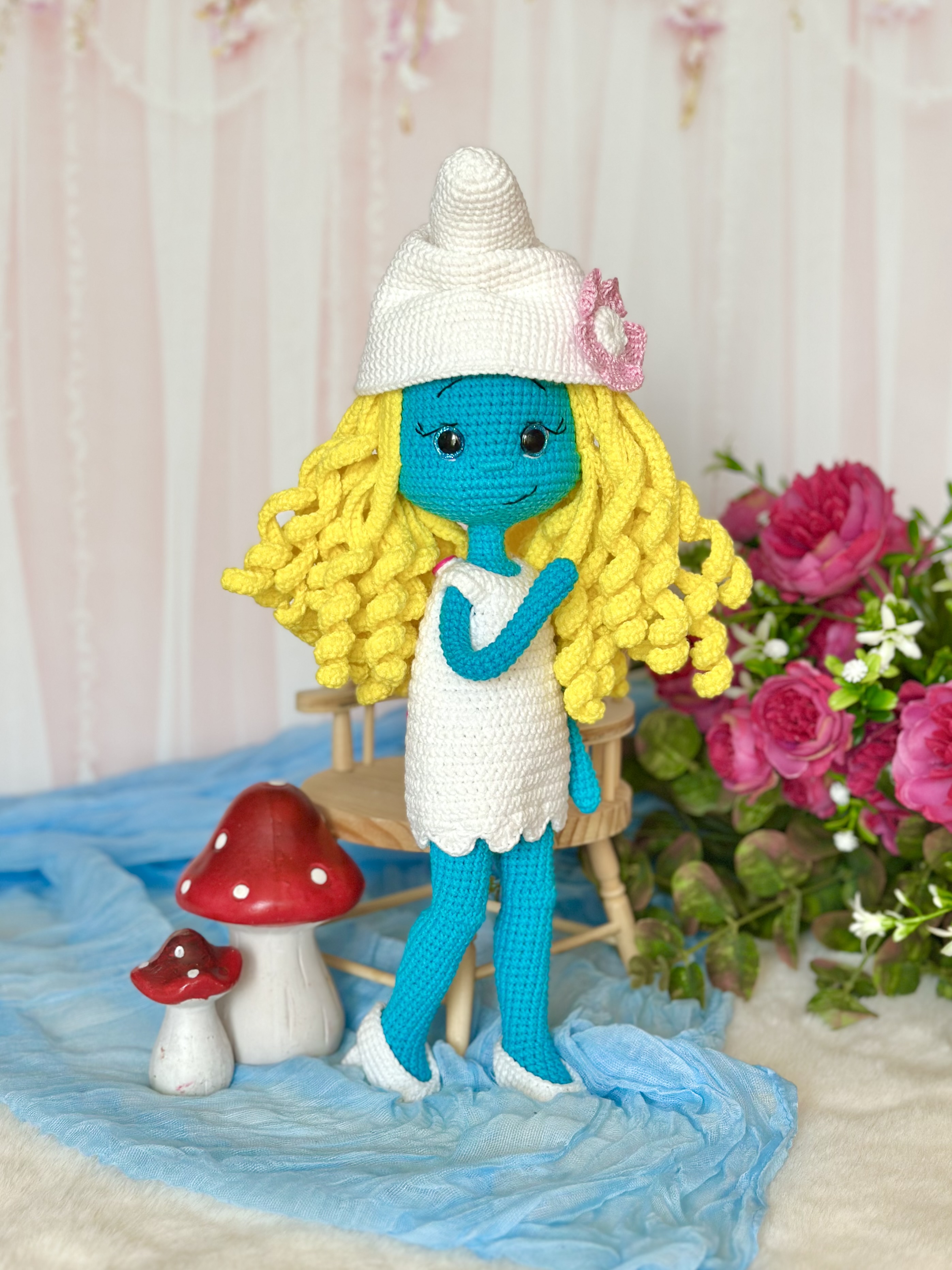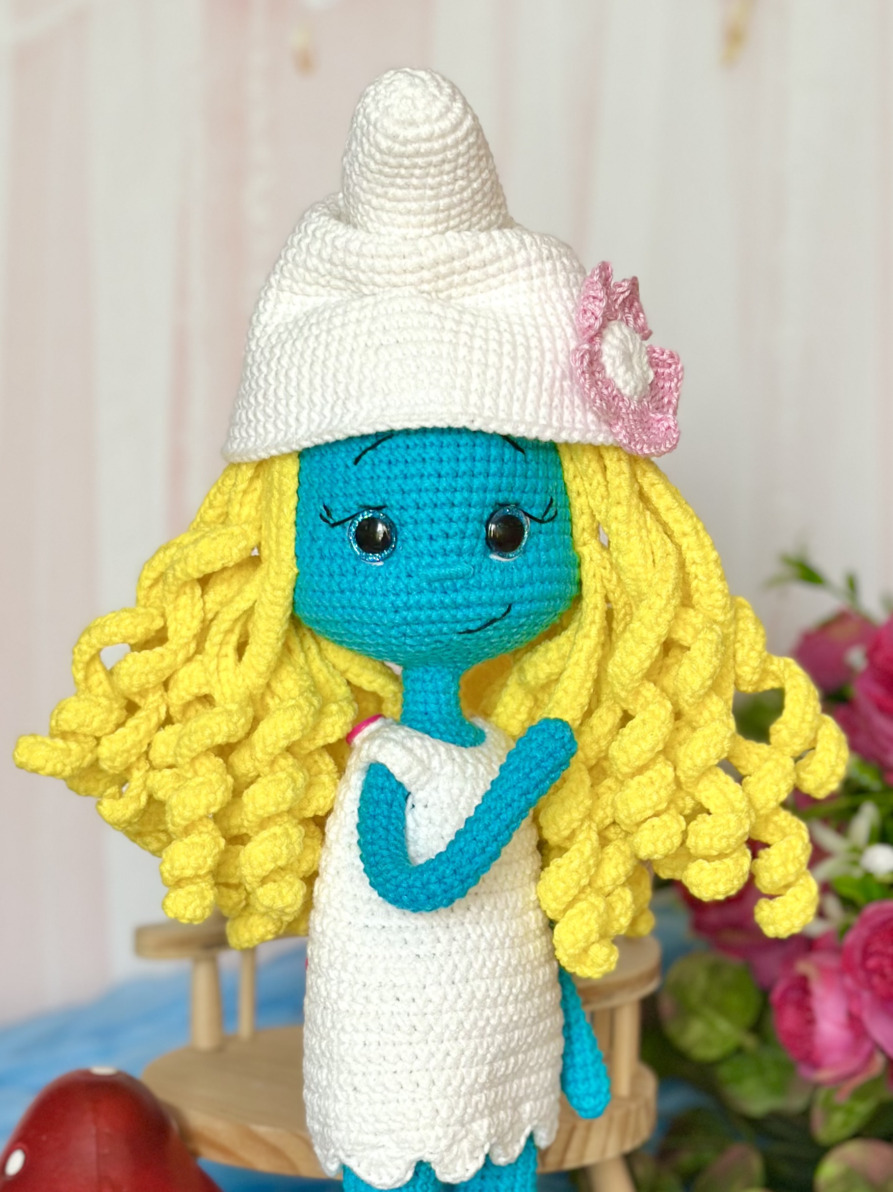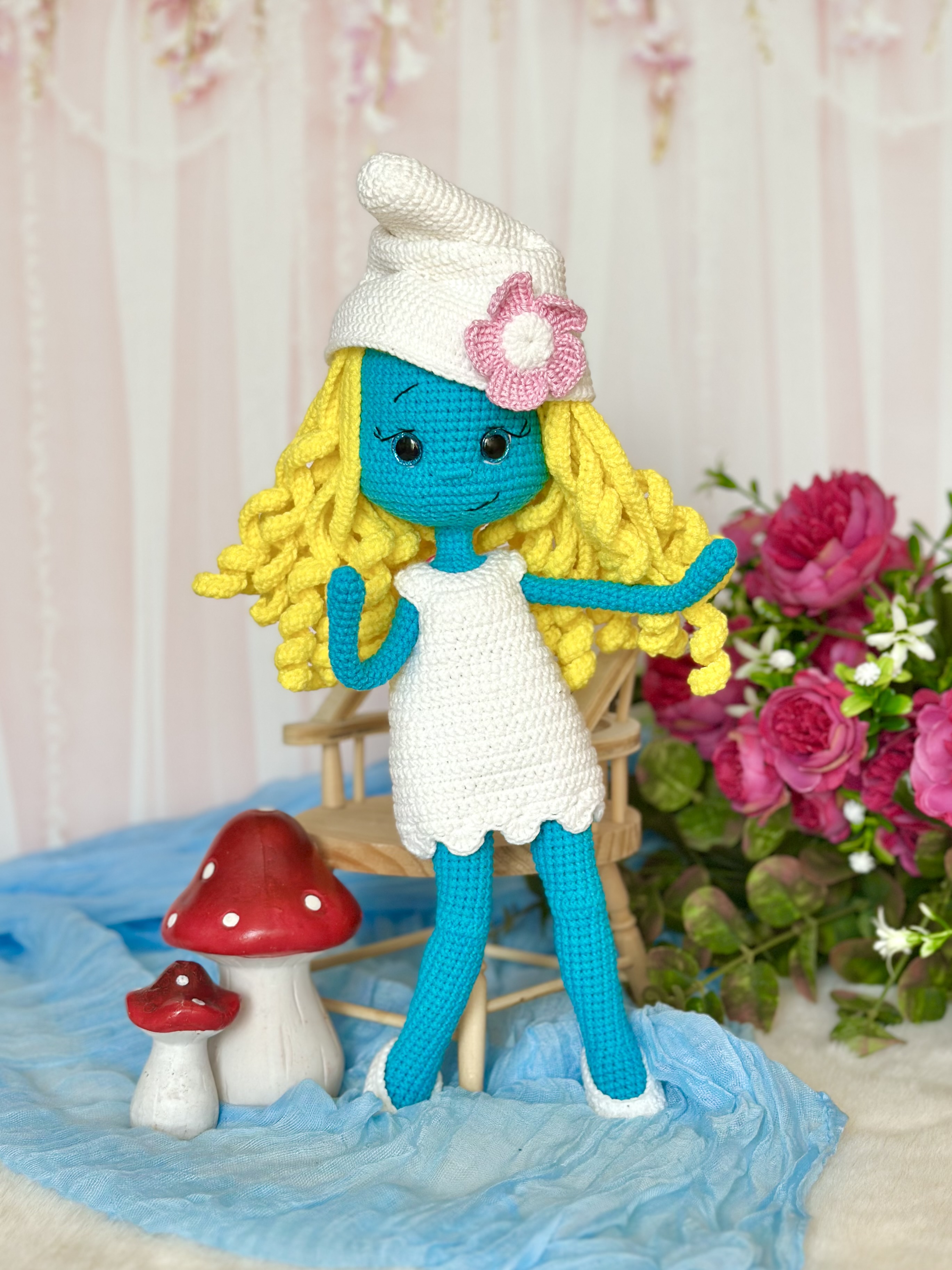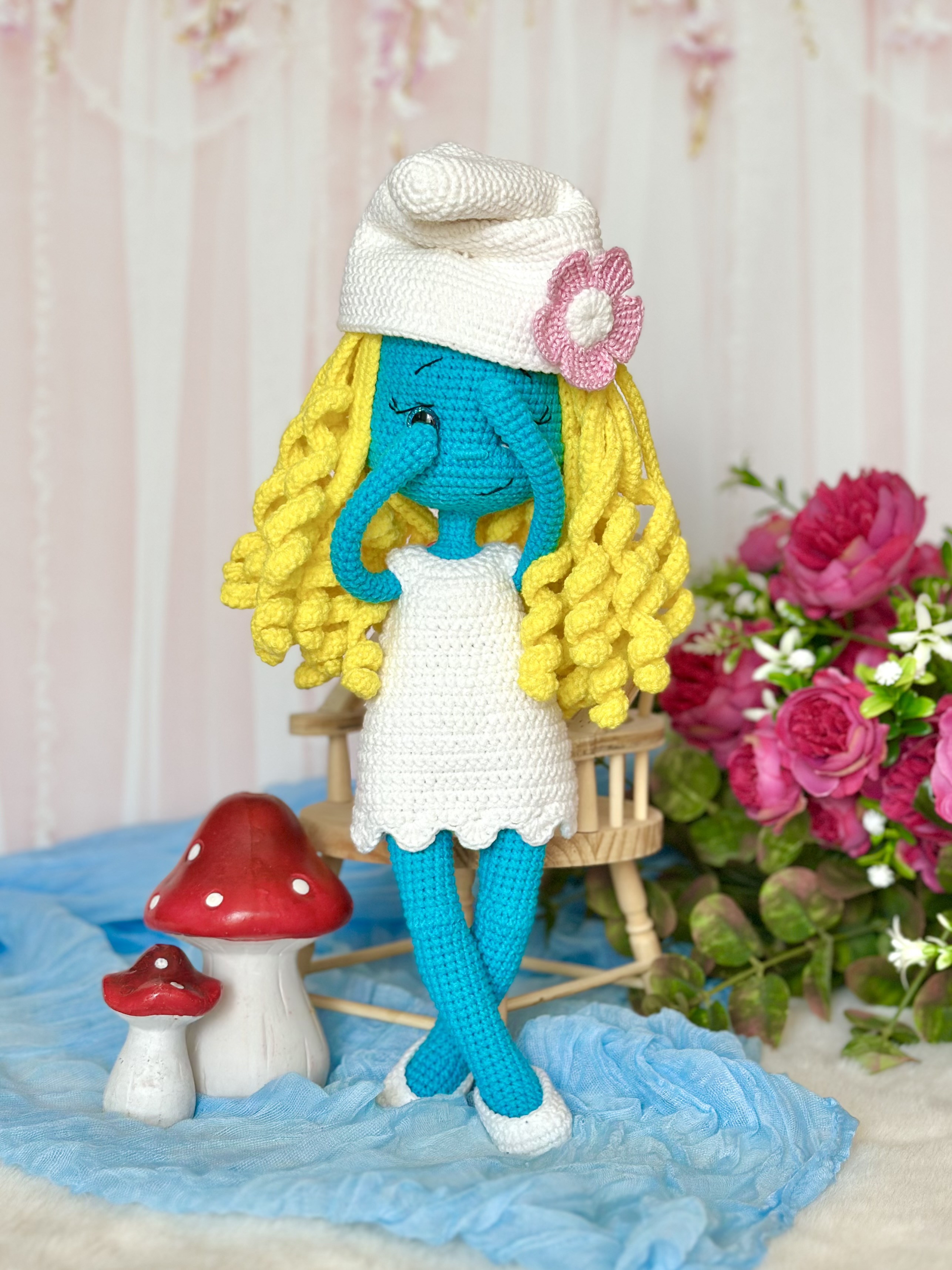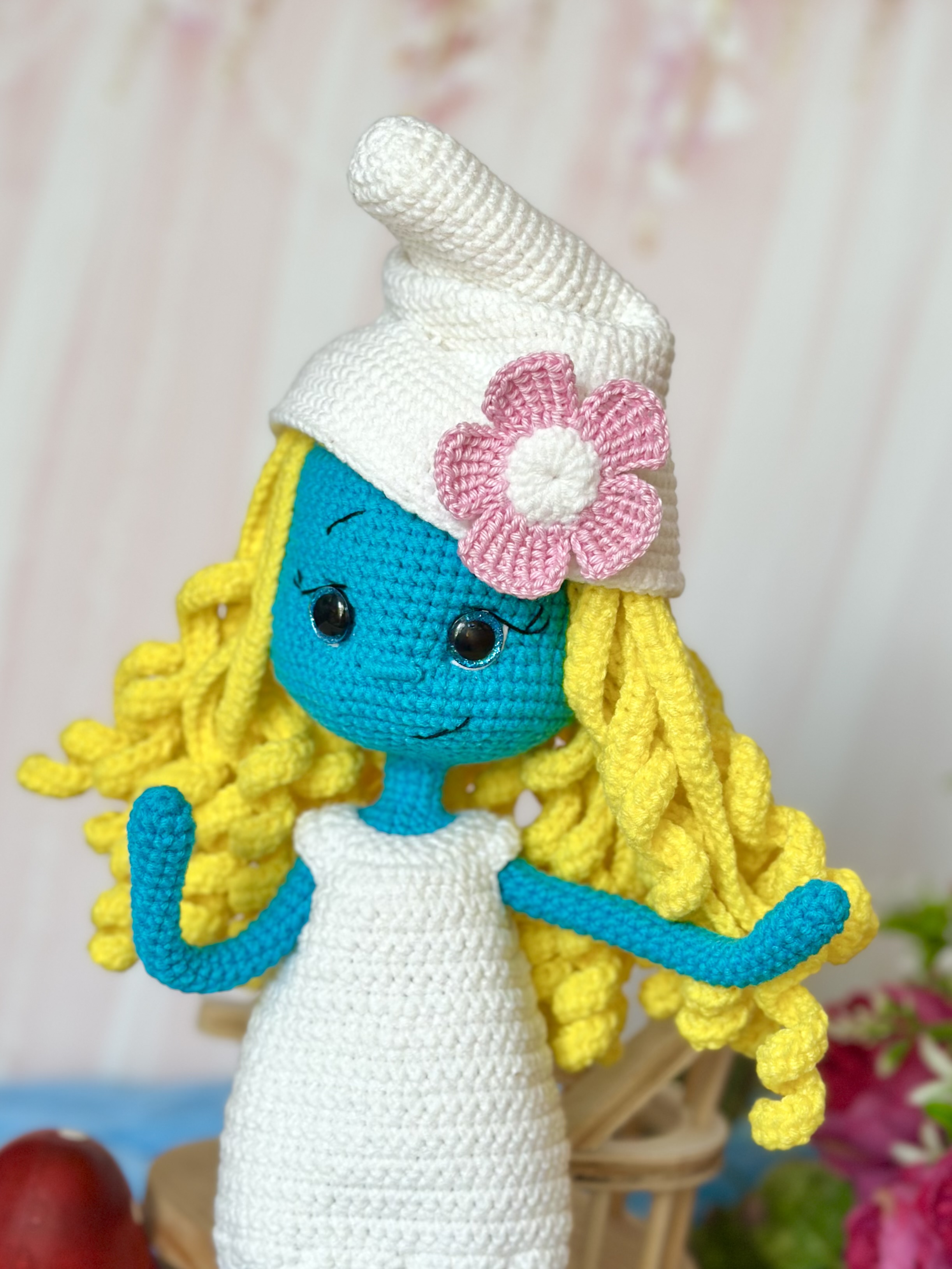 Rękodzieło - smerfetka wykonana szydełkiem