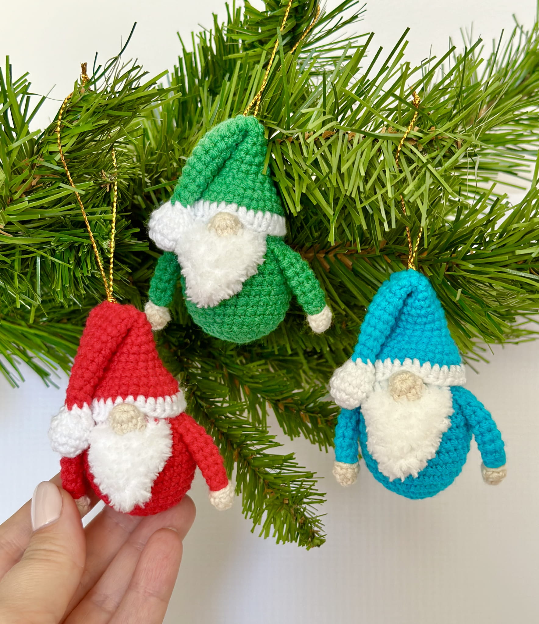 Rękodzieło - zestaw 3 zawieszek - gnomy skrzaty wykonane szydełkiem
