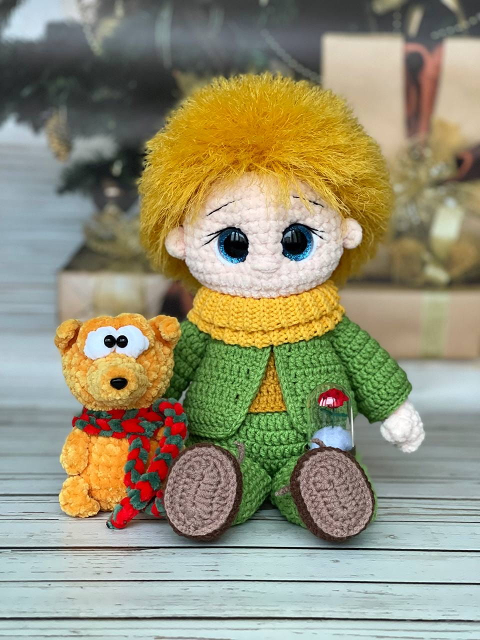 Rękodzieło - zestaw lalka Mały Książe i lisek wykonany szydełkiem