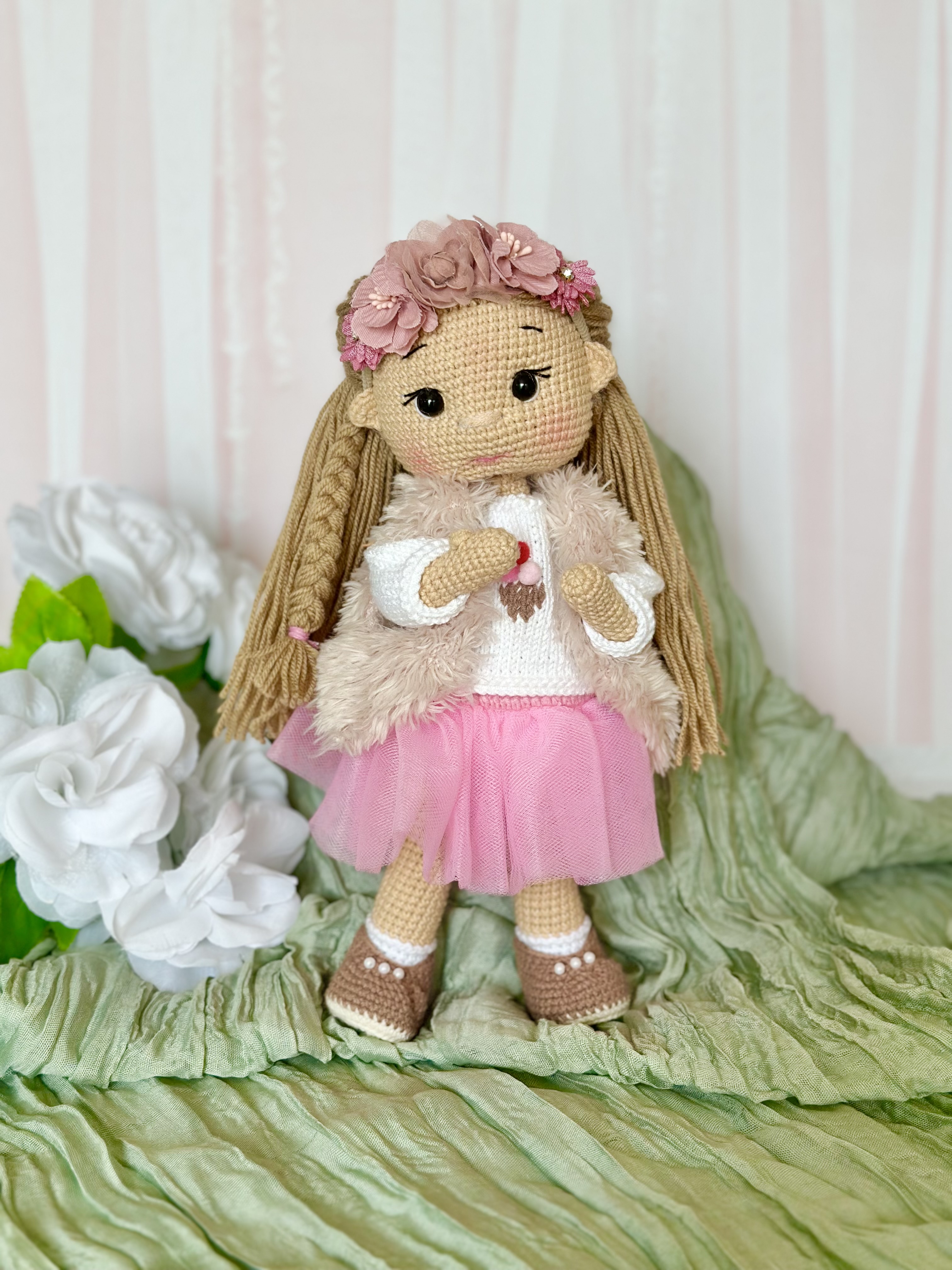 Ubrania lalki (sukienka, buty) są zdejmowane. Jeśli chcesz dokupić kolejne zestawy ubranek do tego modelu lalki, skontaktuj się z nami shop@lesnestwory.com