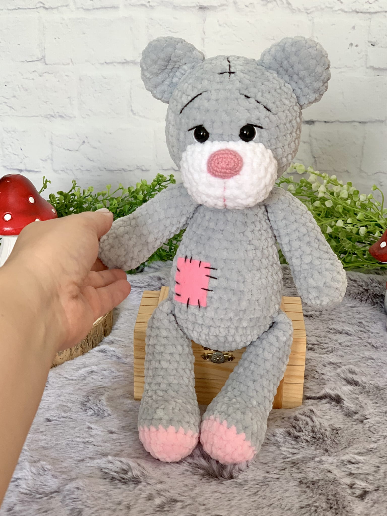 - Nasze maskotki wykonane są z hipoalergicznej włóczki, która się nie rozciąga ani nie mechaci. Dzięki temu maskotka nie straci kształtu, ani wyglądu